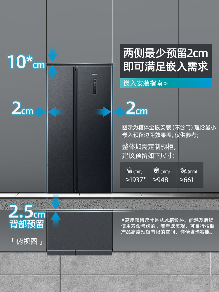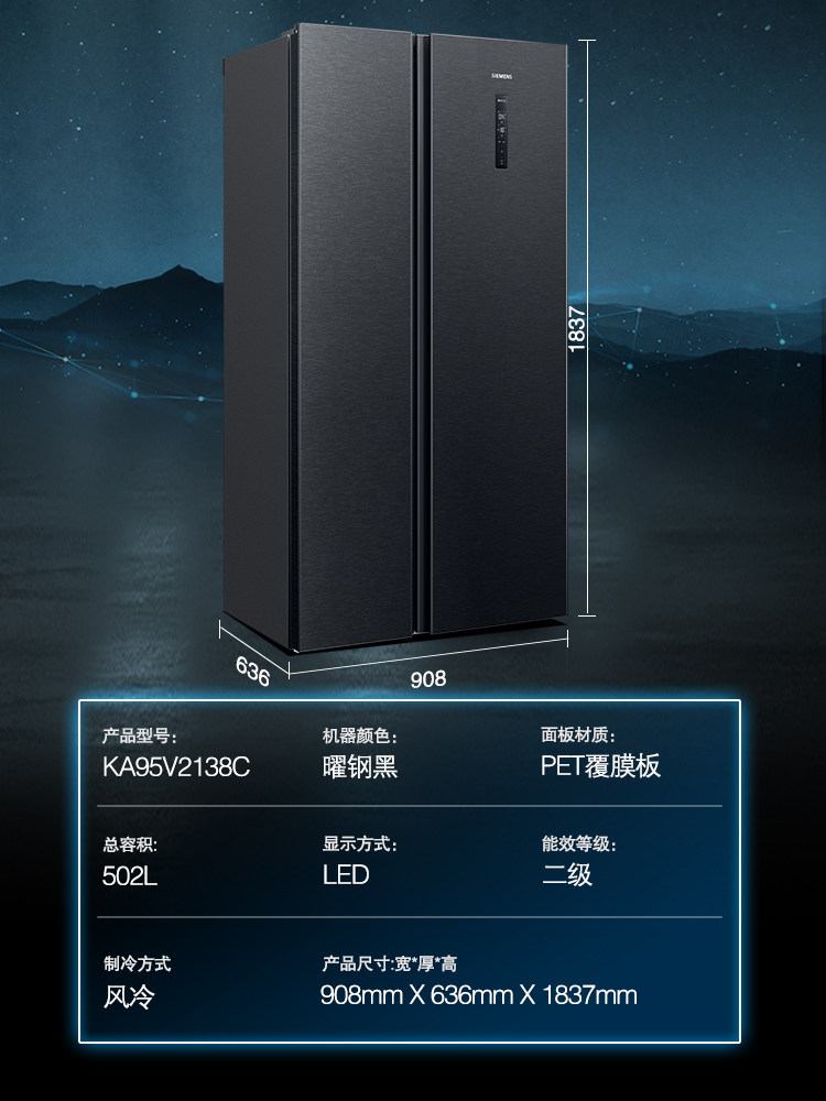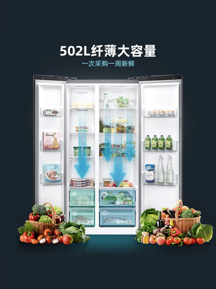 (Ultra-thin embedded) Siemens 502L large-capacity household refrigerator official air-cooled frost-free double-door 2138C
