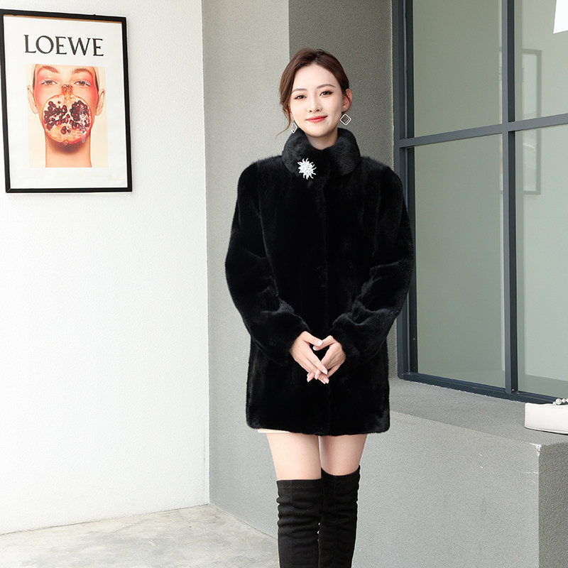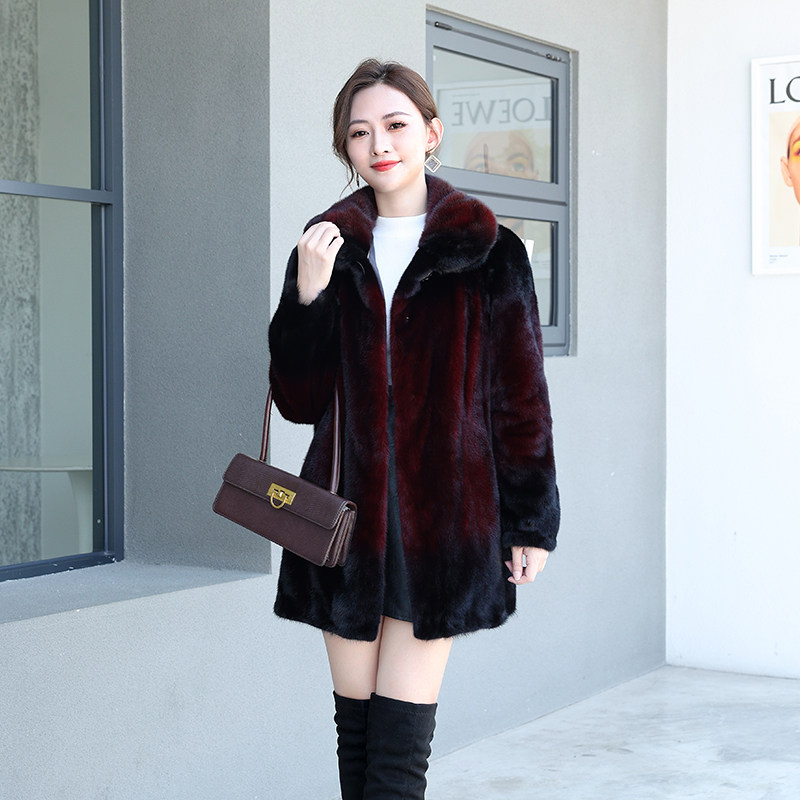 Henin's new mink leather big coat girl with big code mid-aged mother Buffy mink fur imported whole mink coat winter