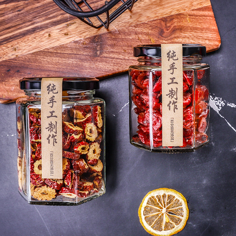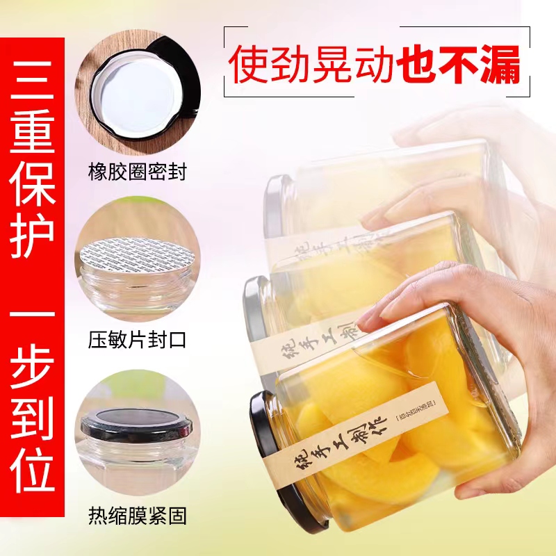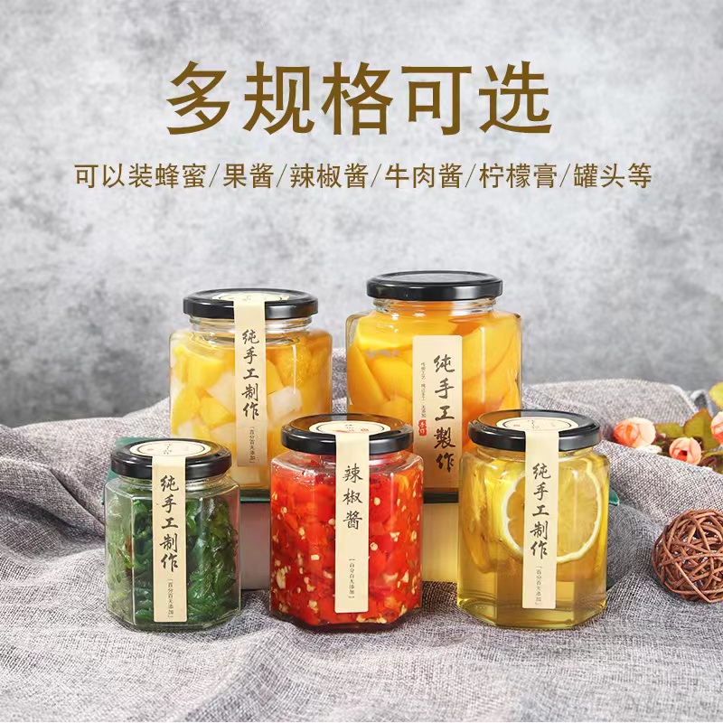 Glass sealing tank with lid food grade chili sauce honey sealed bottle tank head bottle empty bottle Wholesale hexagonal glass bottle-Taobao