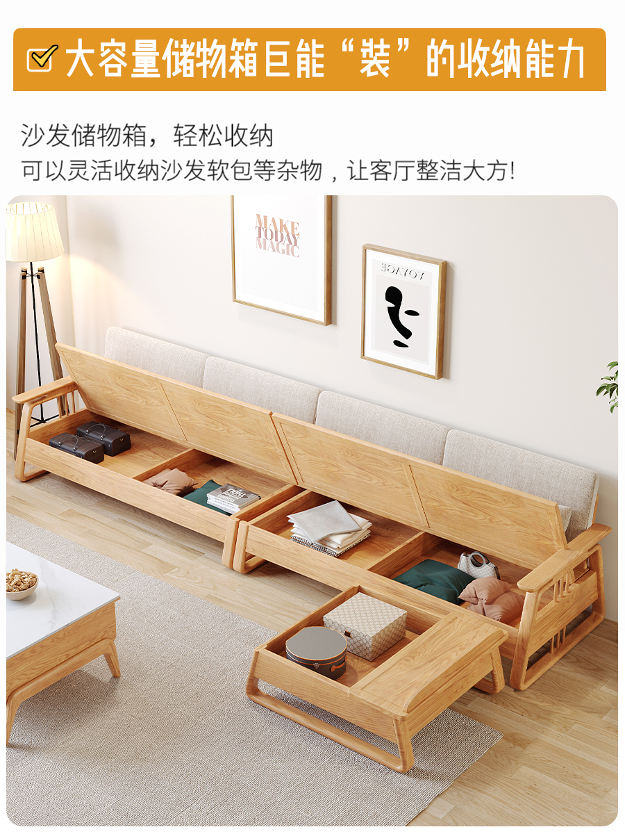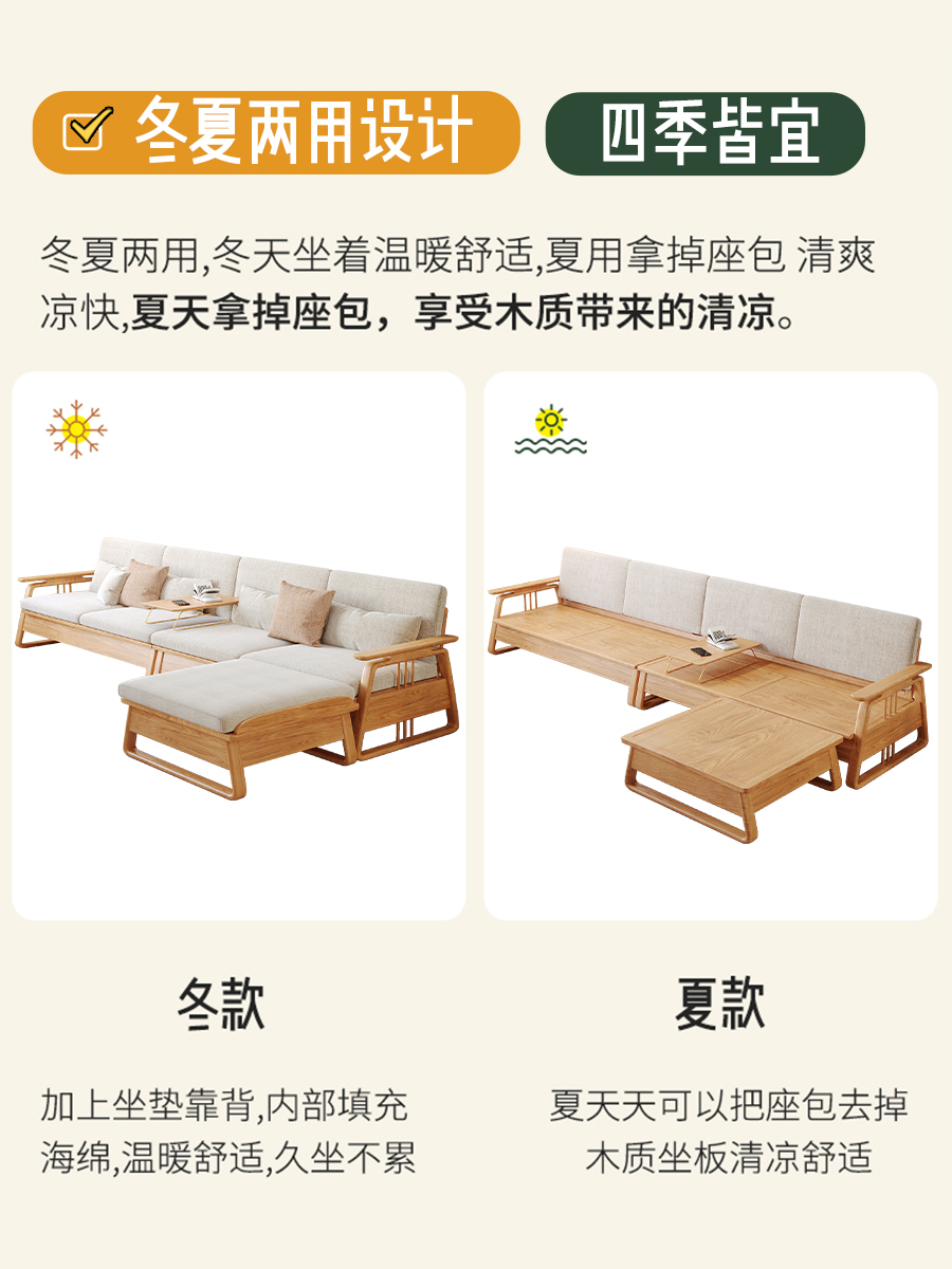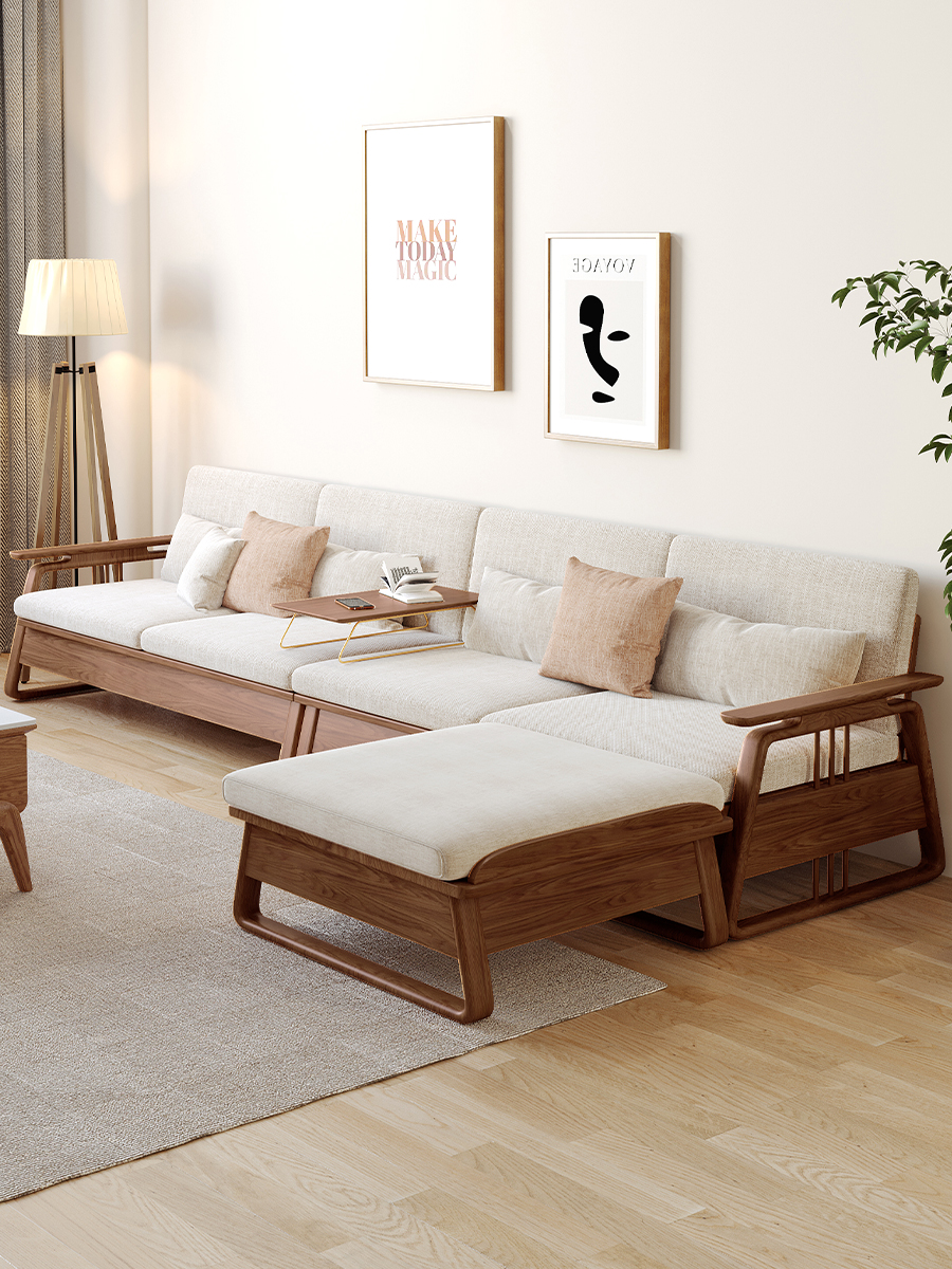 Surprised silence Nordic Japanese style all solid wood fabric sofa Small and medium-sized living room log wind corner sofa combination