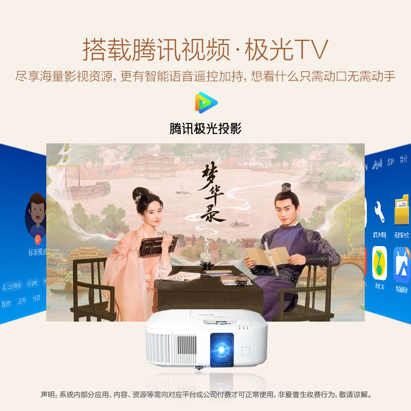 EPSON Epson CH-TW6250T projector 4K HD Home Smart Home Cinema Wifi Wireless Livable phone bedroom Living room Living Room Living-room Living-room Living-room Daytime Direct-cast Smart-to-Screen Projector