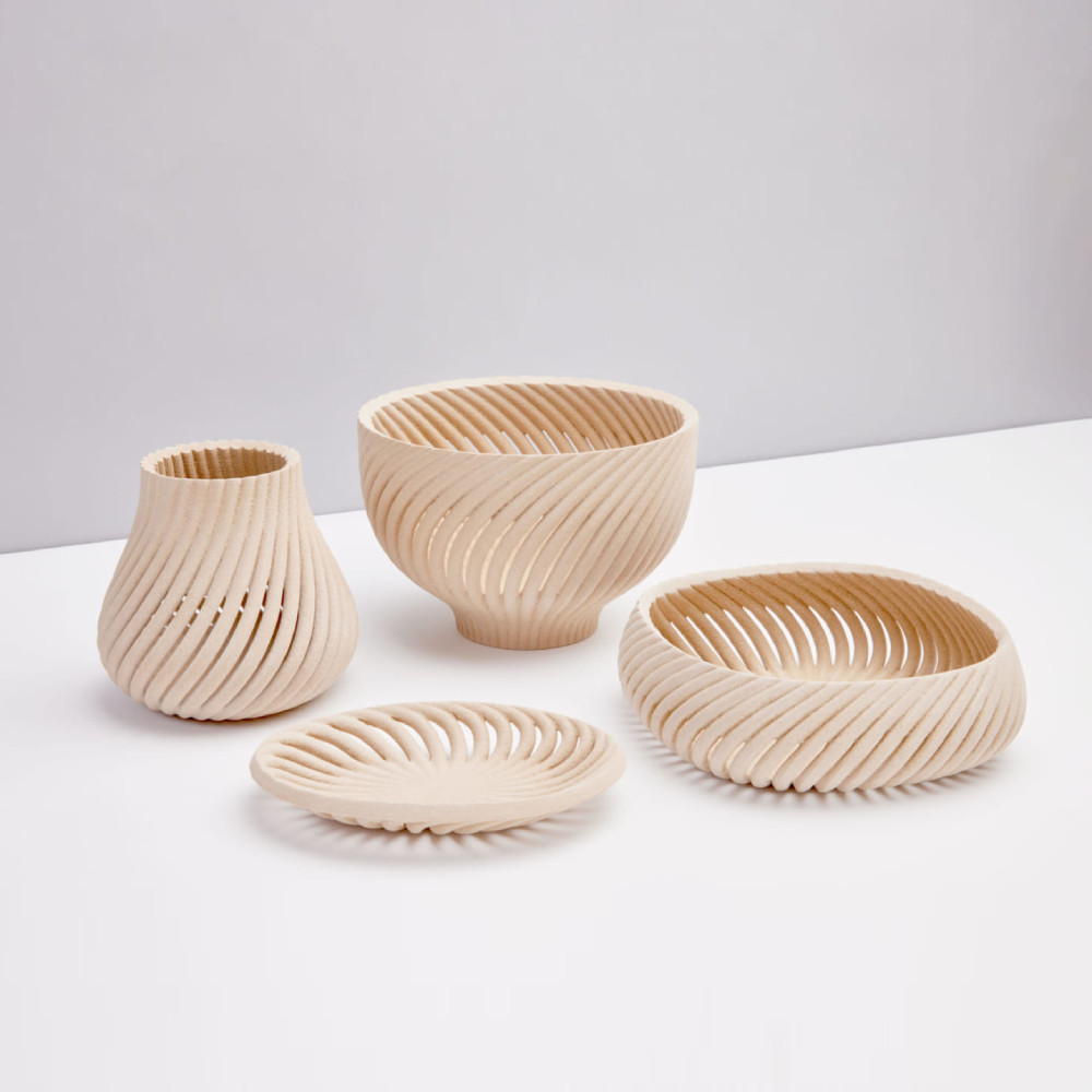 Forust digitally 3D printed eco-friendly wood products bottle tray wrist table decoration