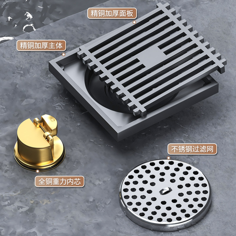 Material selection thickened 59 brass⭐️fake one-to-lose ten thickened fine copper kitchen guard floor drain (full copper deep water seal) Gun Grey Thickened Fine Copper Kitchen floor drain (with full copper core) Gun Grey Thickened Fine Copper Shower area