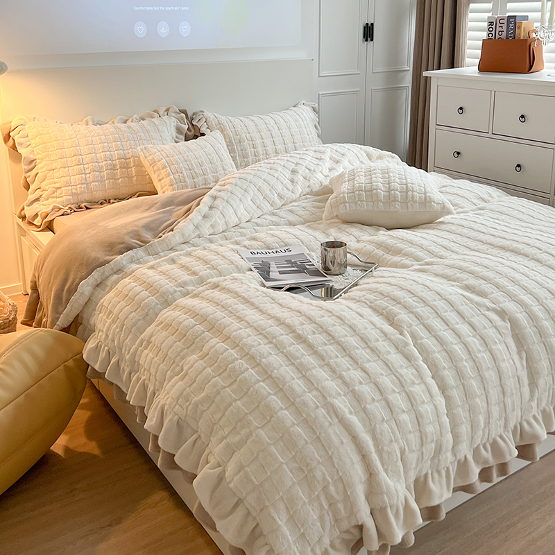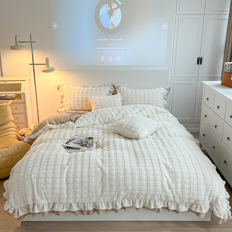 Teenage Girl Hearts Autumn Winter Thickened Double Face Milk Suede Four Pieces Of Warm Coral Suede Quilt Cover 1 8m Bed Bedding-Taobao