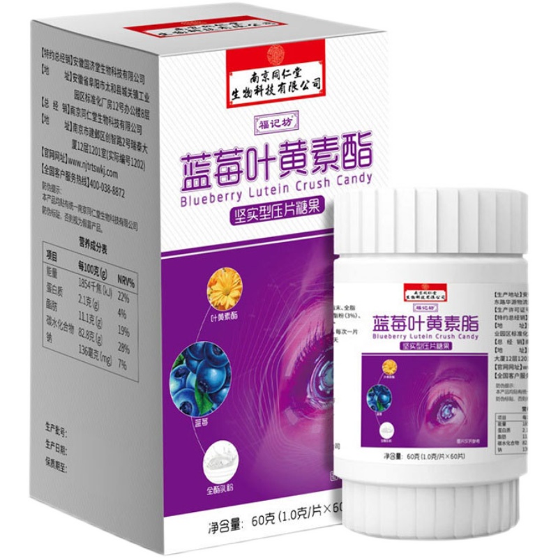 Nanjing Tongrentang Fujifang blueberry lutein 30 chewable tablets student official flagship store