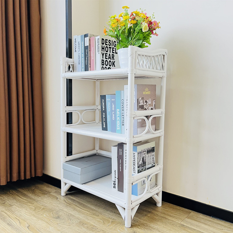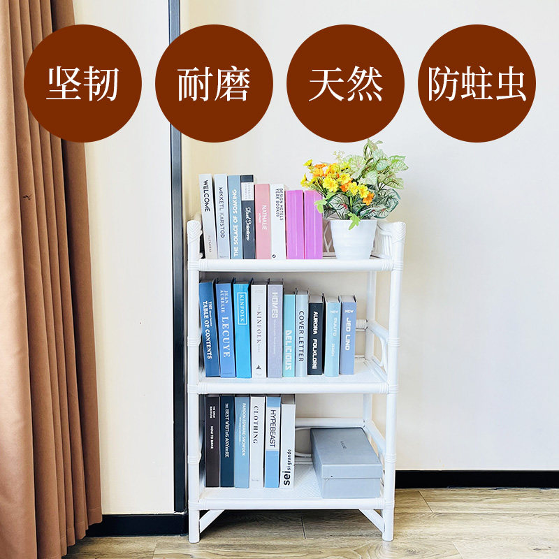 European-style rattan bookshelf floor-to-ceiling storage shelf simple household rattan children's storage rack white bookcase rack