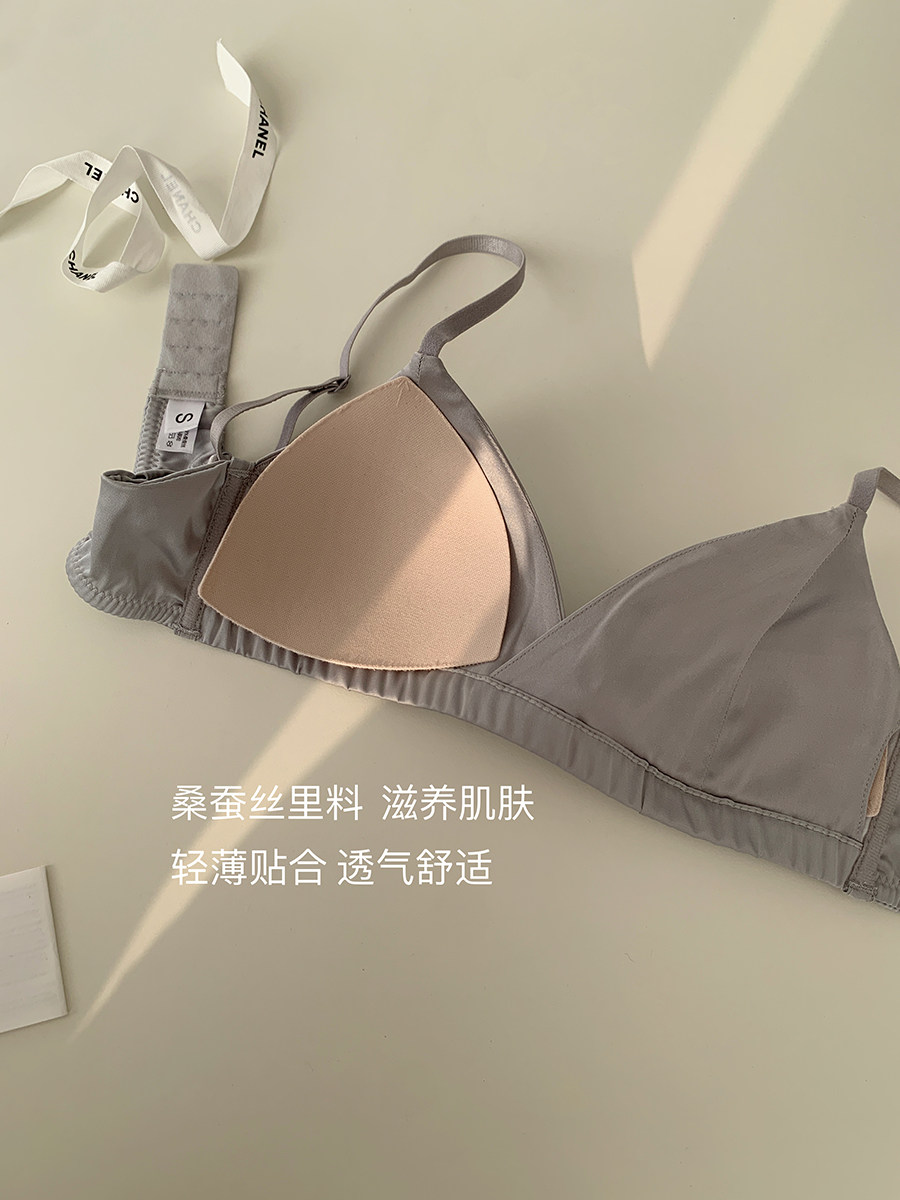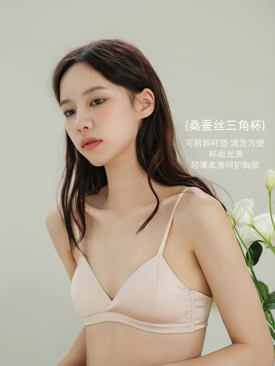 OllaBra Satin Face Triangle Cup Small Chest Underwear Mulberry Silk Glossy Comfort Breathable Bra Without Steel Ring Bra Woman-Taobao