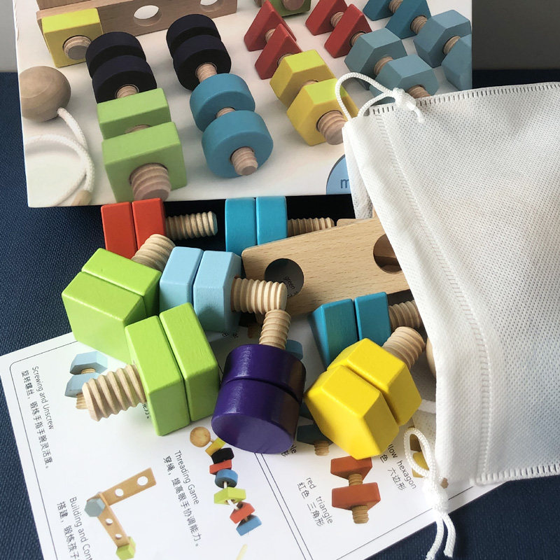 Baby's children Early teaching fine action training screwscrews Real building blocks 1 1-3-year-old wearing string pairing Puzzle Toys-Taobao