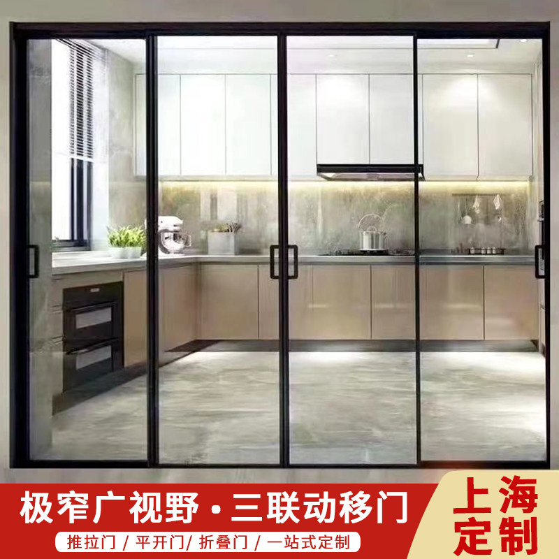Extremely narrow sliding door narrow frame balcony triple linkage Changhong glass sliding door custom living room kitchen partition sliding door