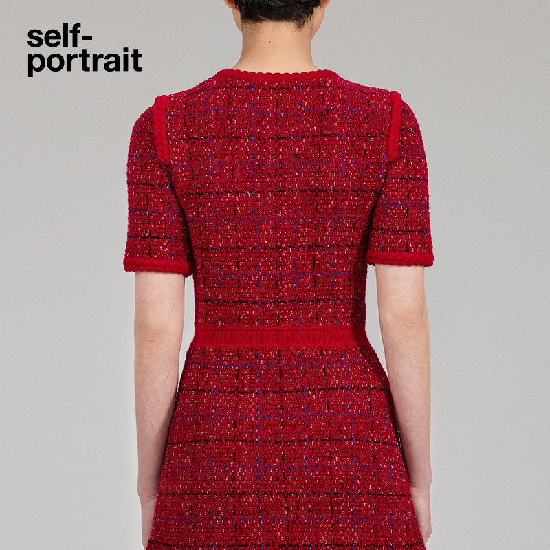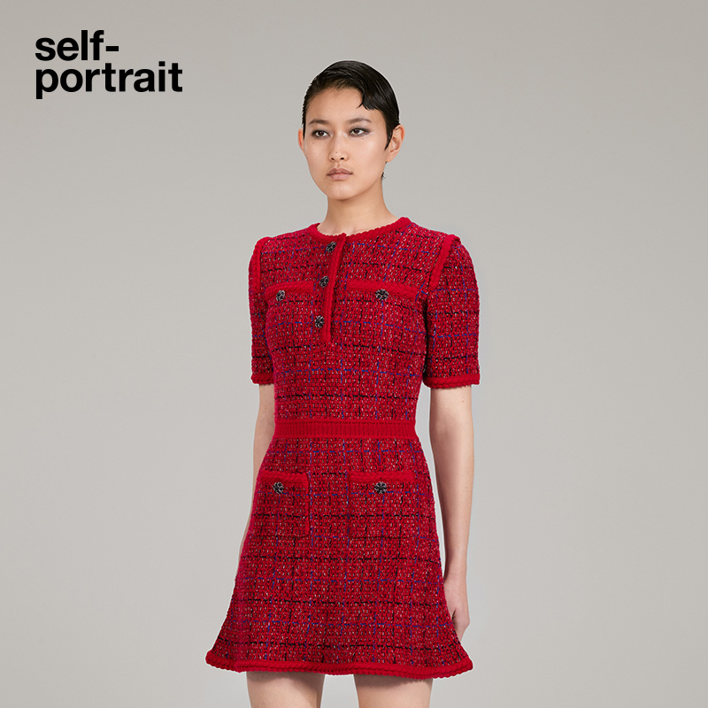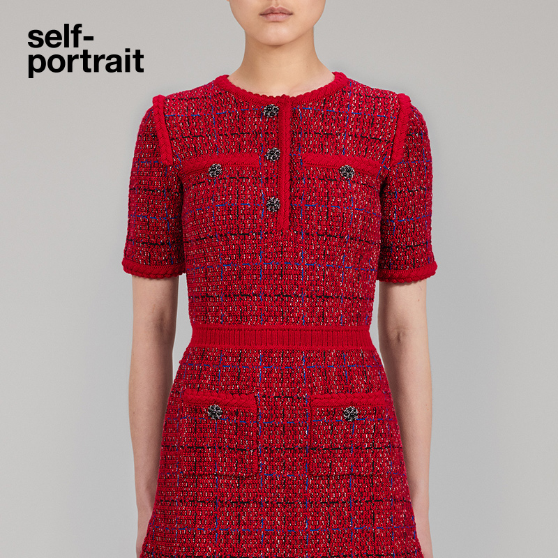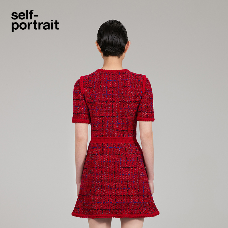 self-portrait 2022 autumn and winter red blended round neck nifty waist knitted dress skirt
