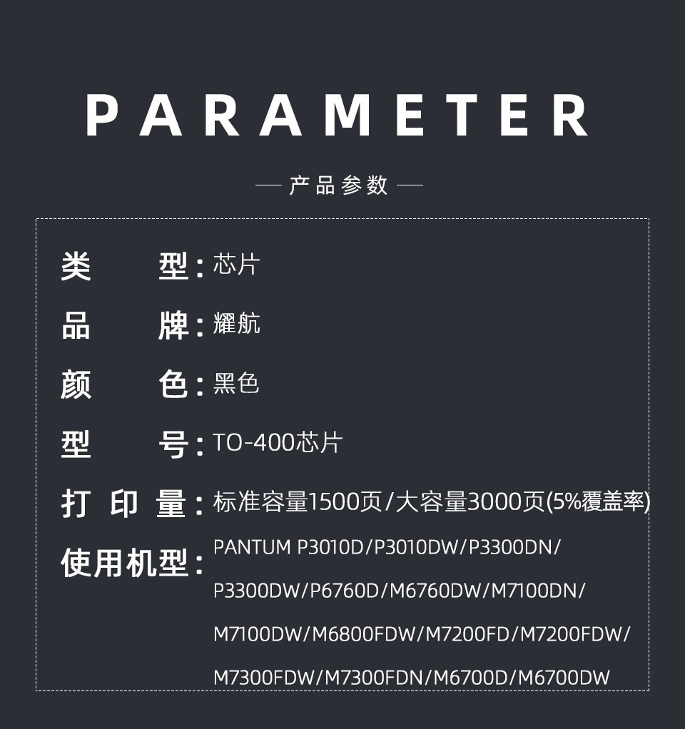 TO-400 powder box chip (1500 pages) TO-400H large content powder box chip (3000 pages) TO-400X oversized powder box chip (6000 pages)