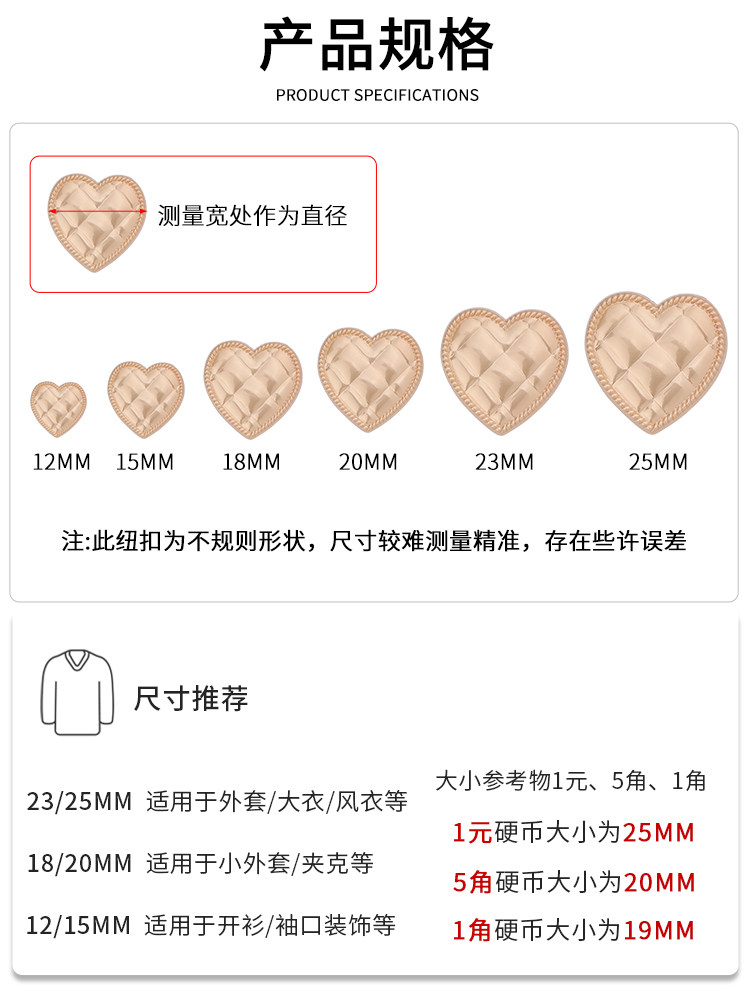 High-end love peach metal button and sweater shirt coat cute creative high-foot sewing button