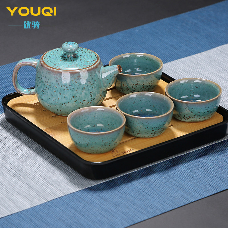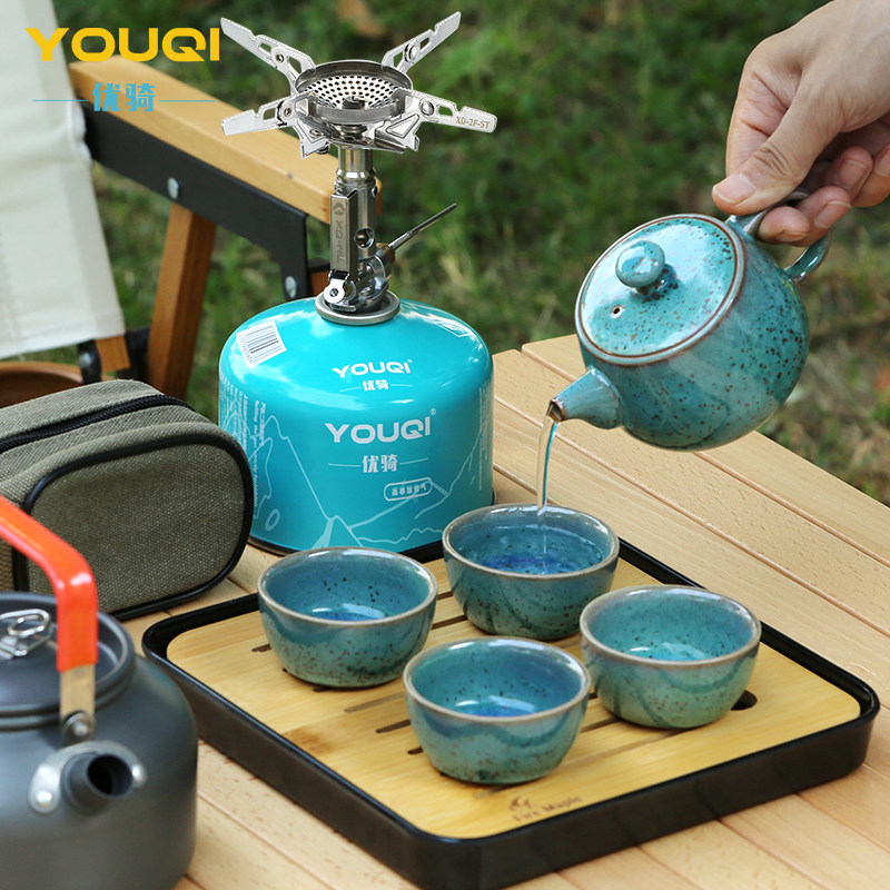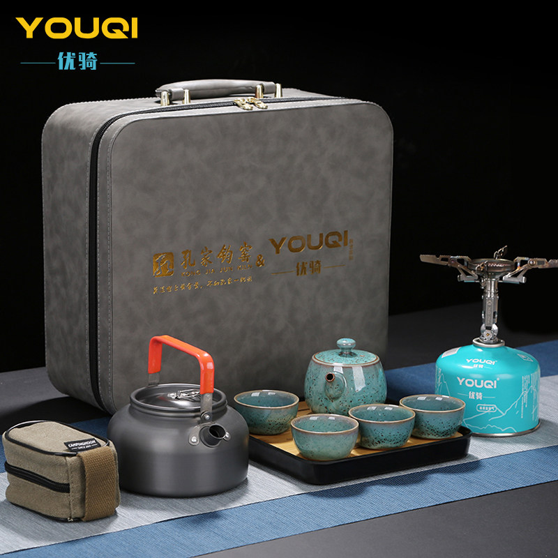 Kong Jiajun Kiln Youqi Joint Outdoor Leisure Tea Set Jun Porcelain Teapot Portable Teapot Gift Set Box