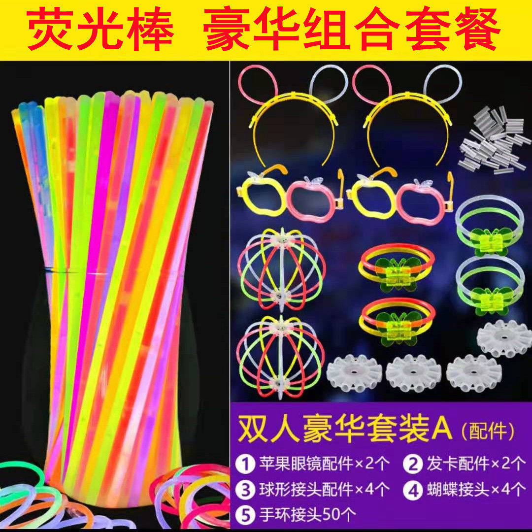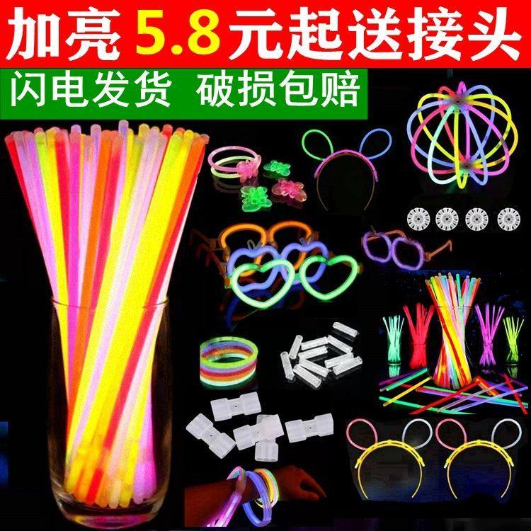 Luminous Fluorescent Stick Children Innocuous Seven Colorful Hands Ring Colorful luminous stick Night Market Pendulum Stall Luminous Toy Mesh Red-Taobao