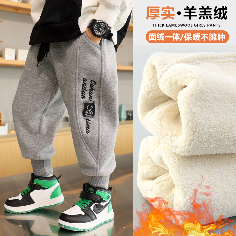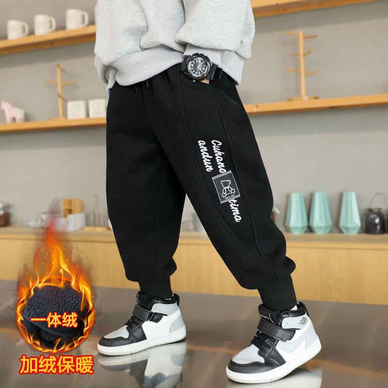 Boy pants autumn winter style Han version in Korean version Children's winter sweatpants garnter thickened and integrated suede baby sports pants-Taobao