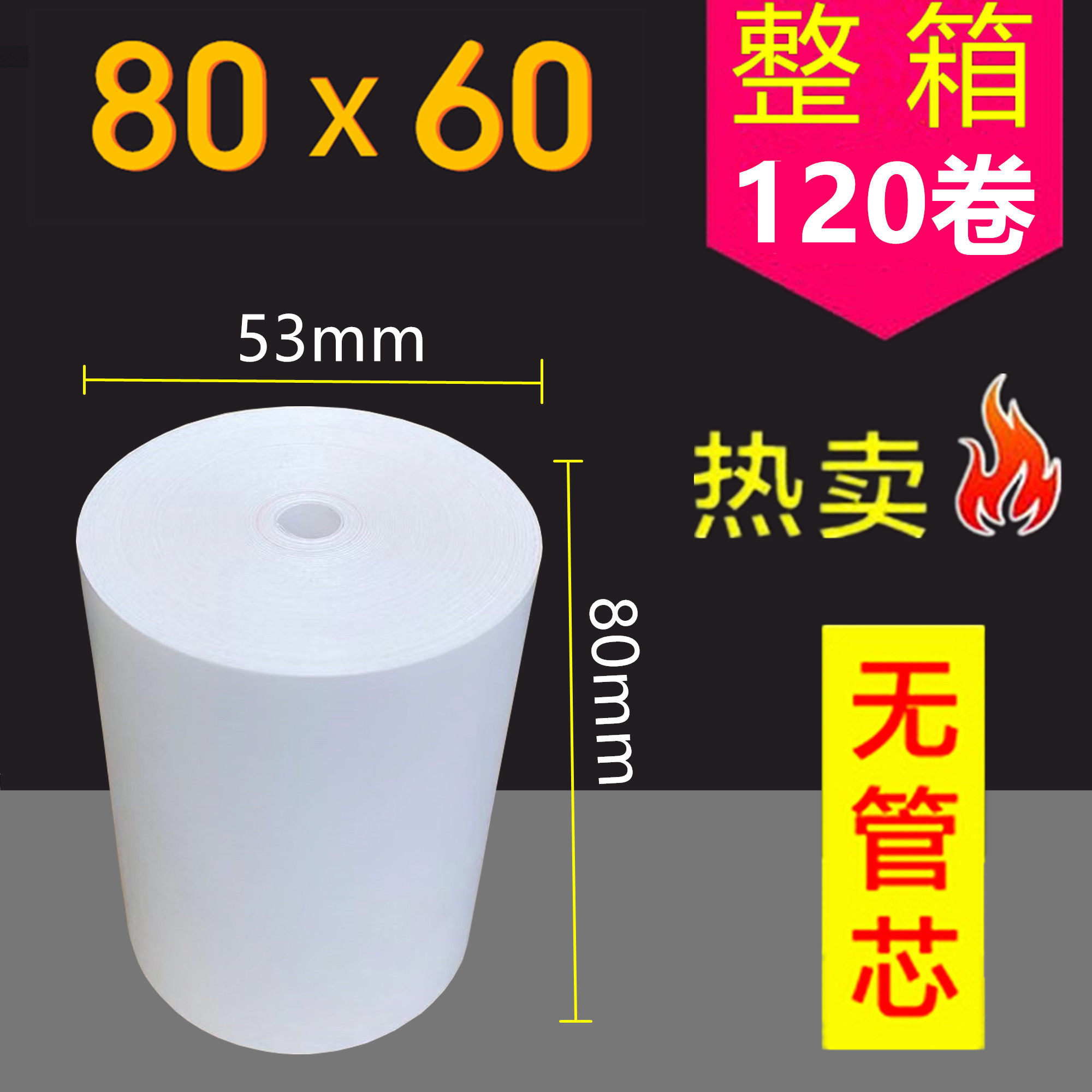 80x50 small tube core diameter 46mm 60 rolls 80x50 small tube core diameter 46mm 120 rolls 80x60 small tube core diameter 53mm 60 rolls 80