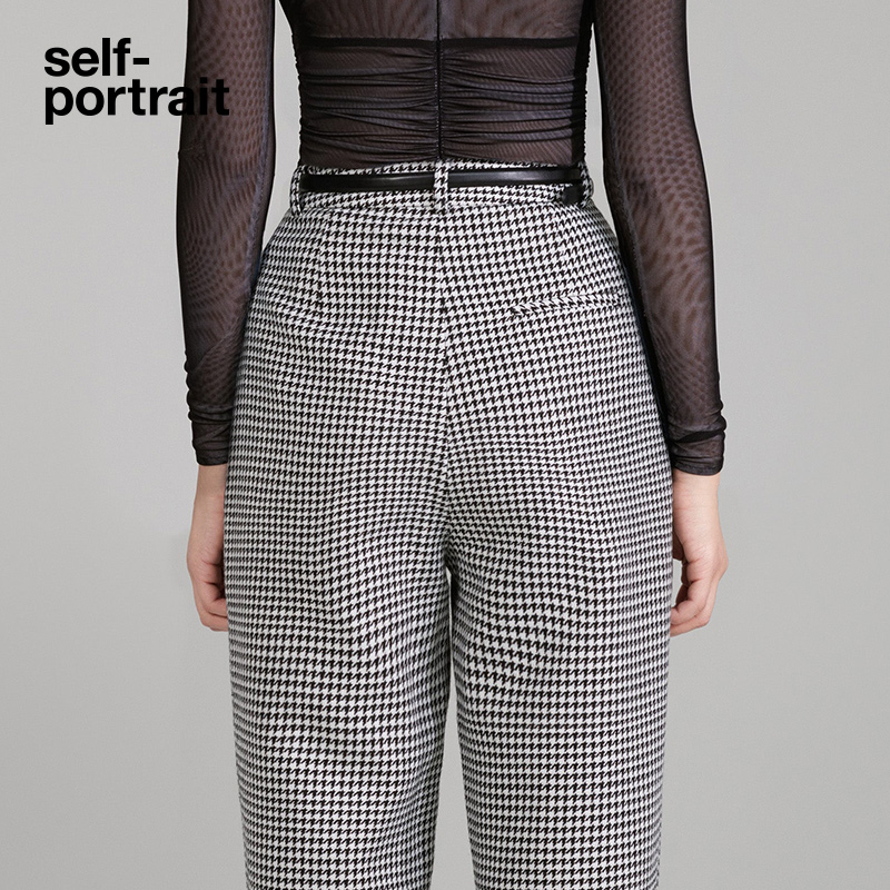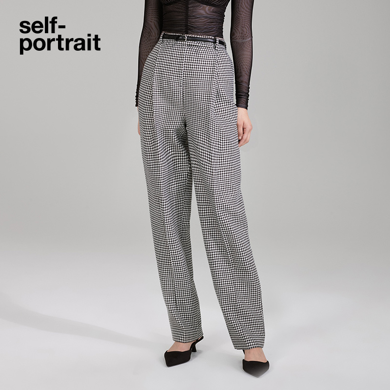 self-portrait 2022 autumn and winter gray plaid commuter all-match suit trousers