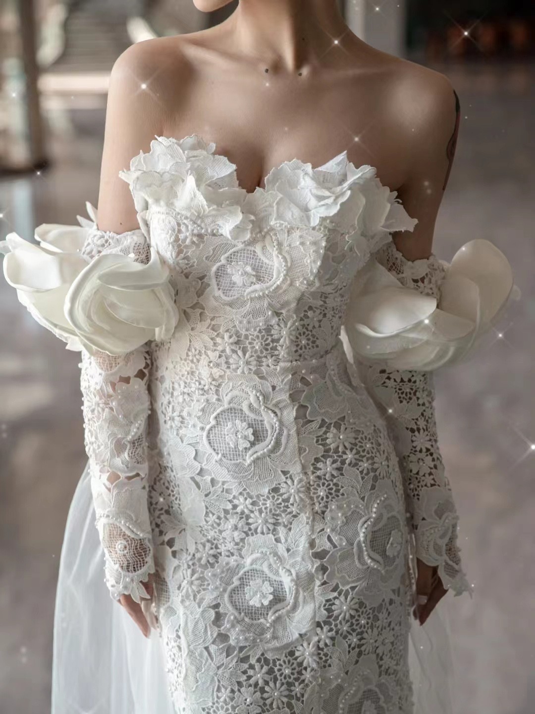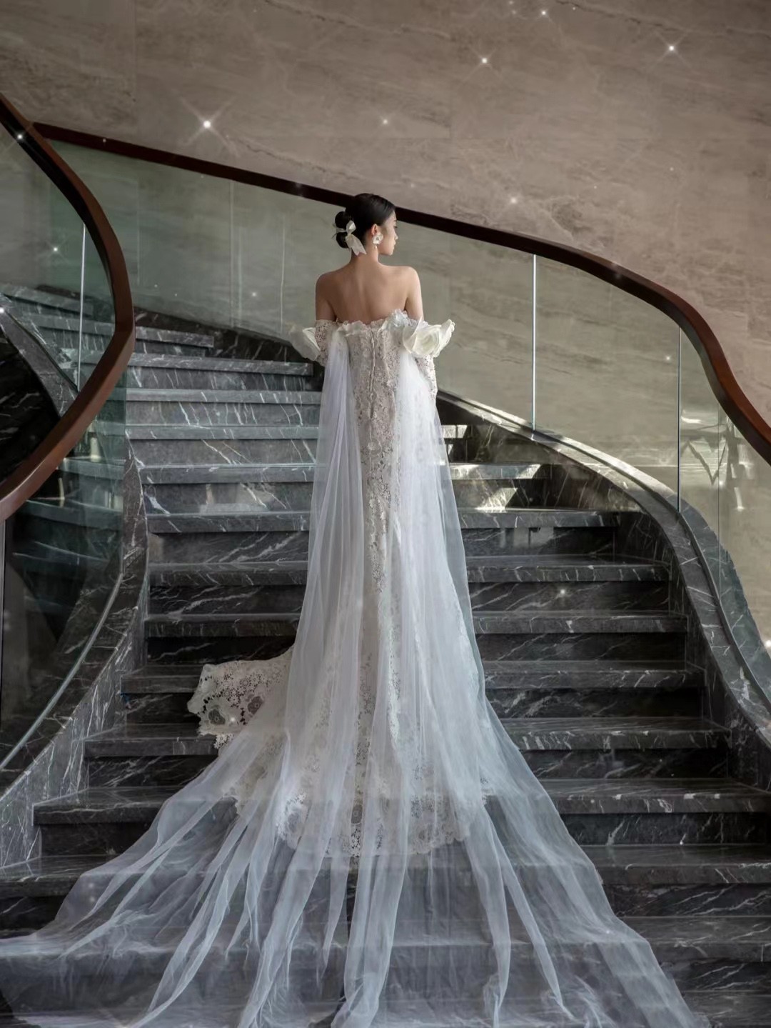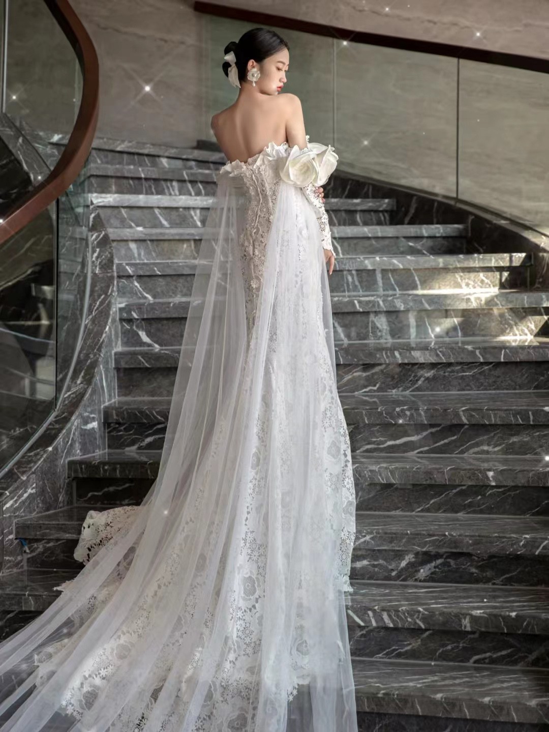 Fishtail Wrap Hip Gown Movie with lace Lace Light Wedding Dress 2023 New Bride Little Guy to go out of the way-Taobao