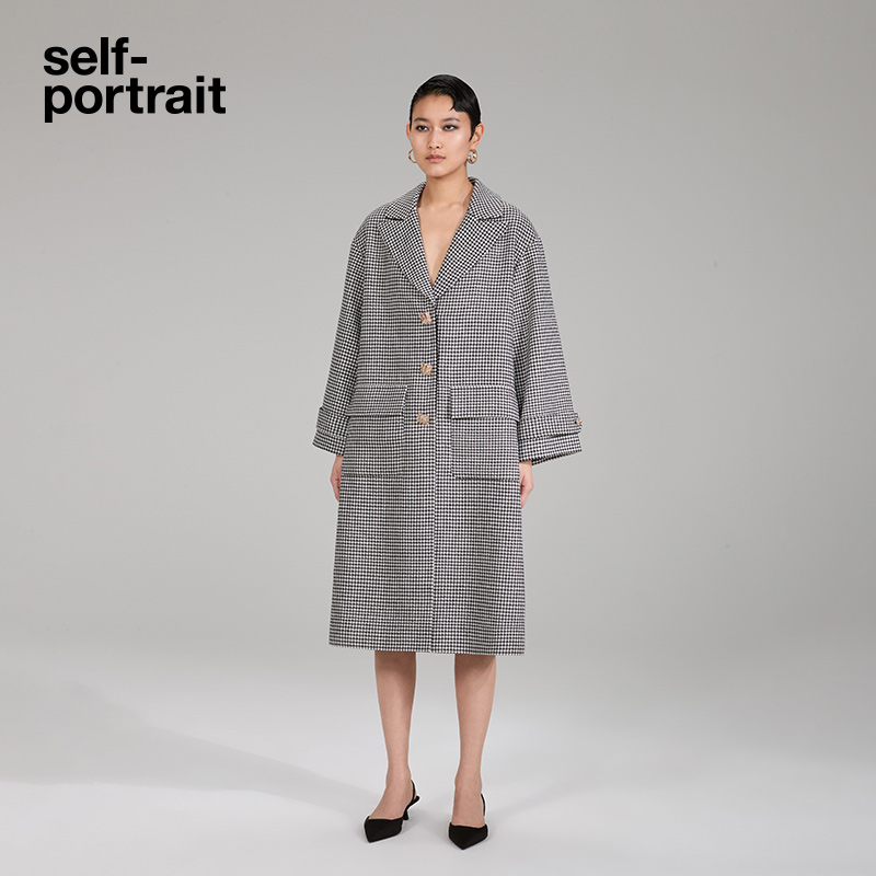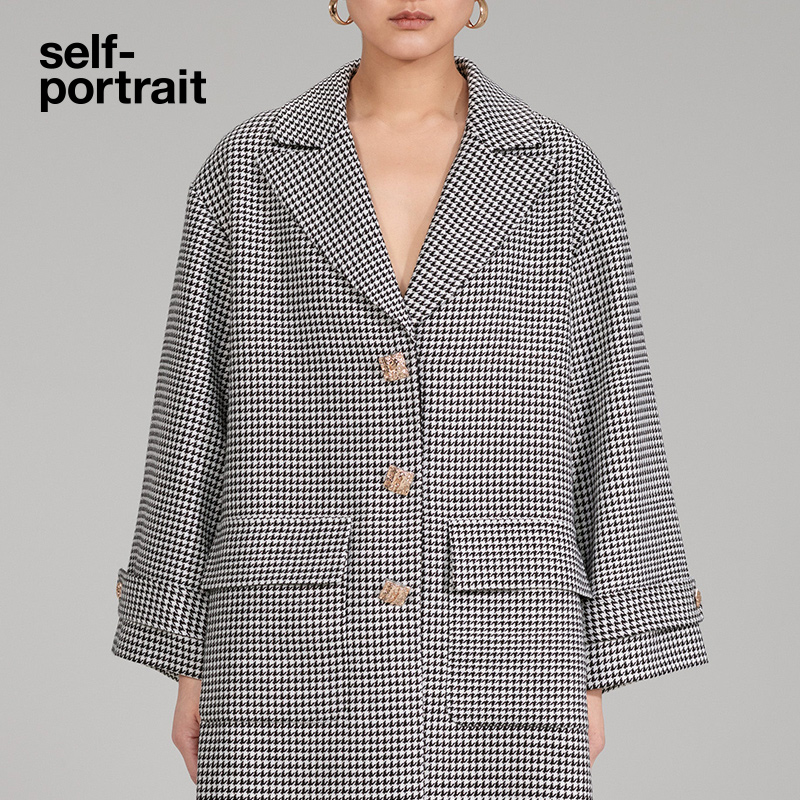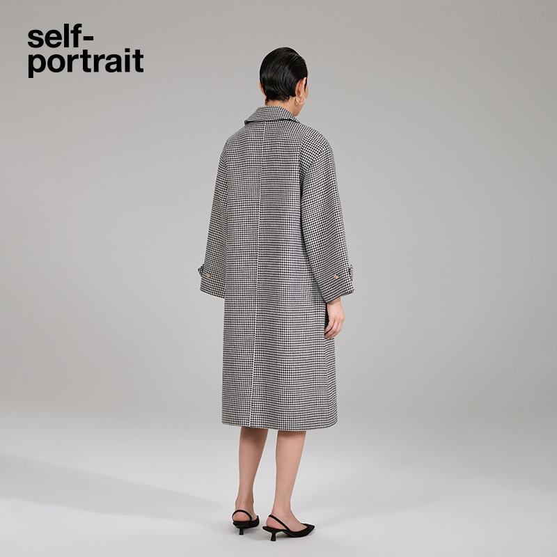 self-portrait 2022 autumn and winter gray plaid commuter all-match suit silhouette coat