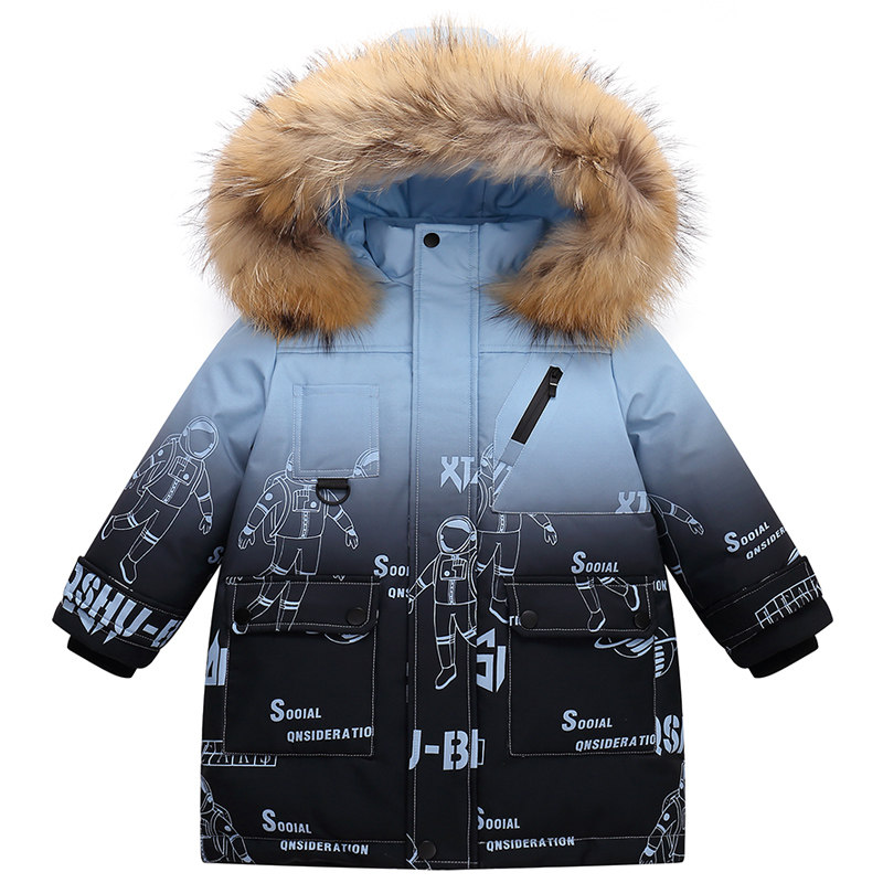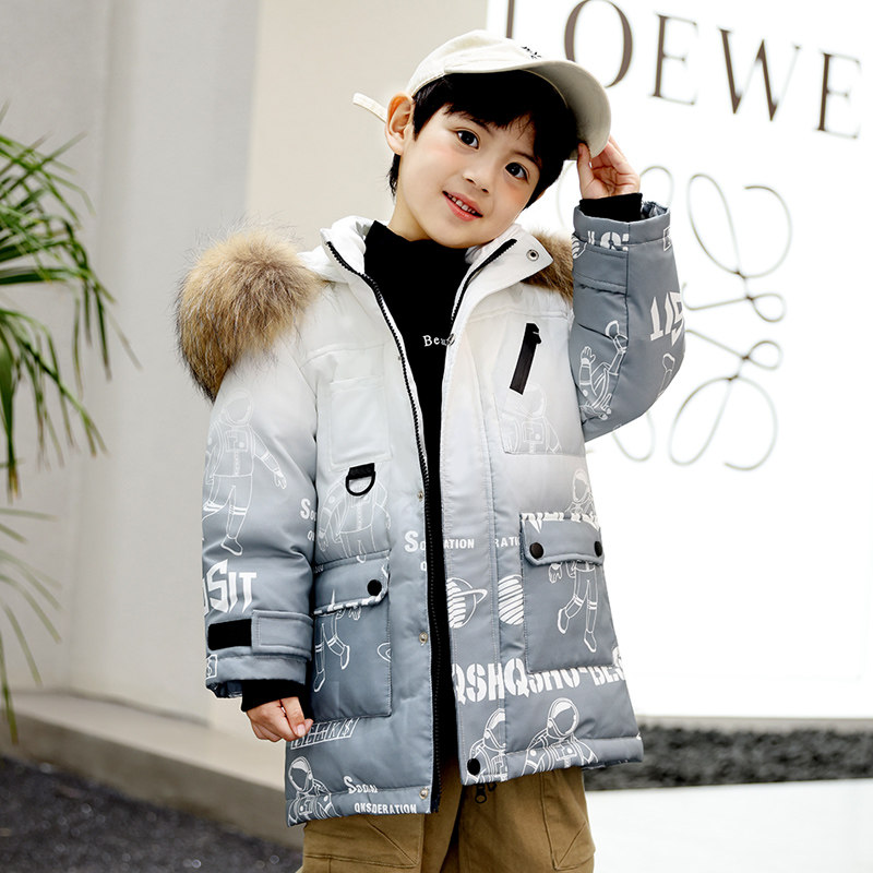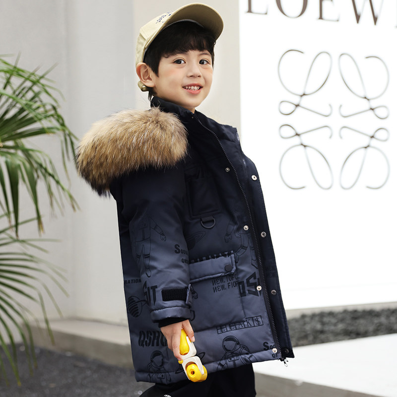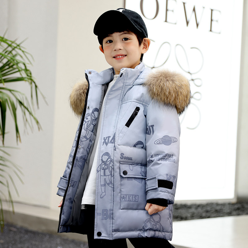 Bala boy down jacket 2022 new winter mid-length version thickened foreign style fur collar boy handsome warm jacket