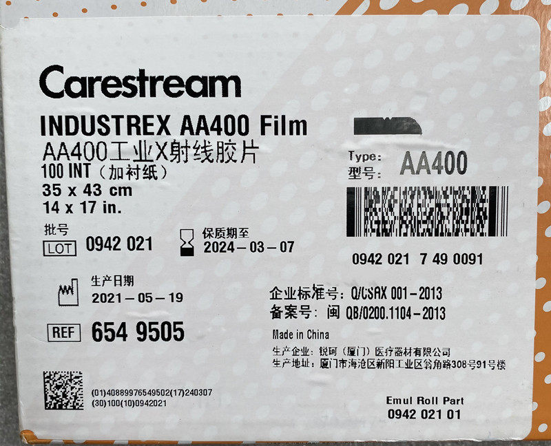 Kodak industrial flaw detection X-ray film non-destructive testing AA400 R400 MX125 T200