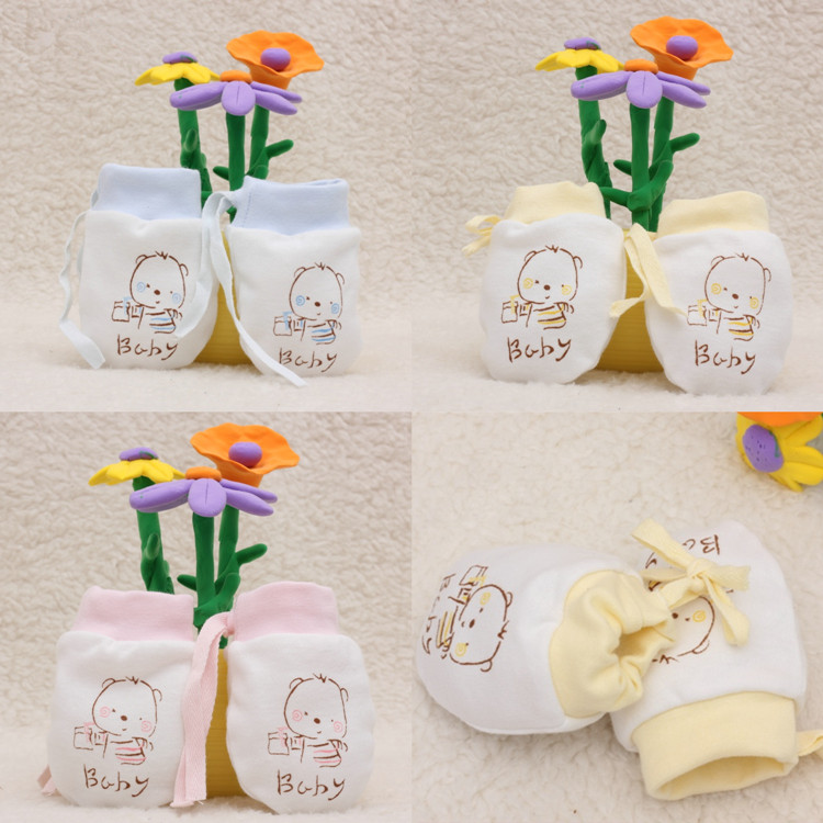 Baby gloves anti-scratch face artifact autumn and winter warm can bite pure cotton newborn baby anti-scratch glove bag