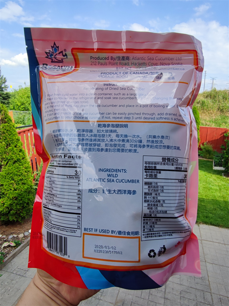 Canada Direct mail Rosalyn wild Atlantic Sea Cucumbers Dry Goods Opening to Ready-to-eat 454g-Taobao