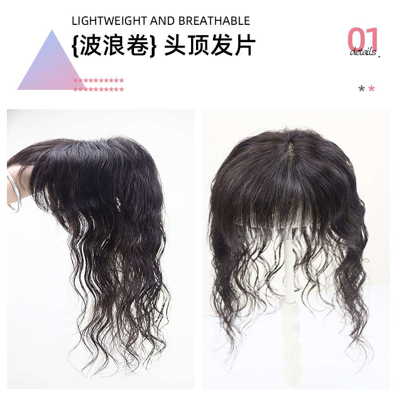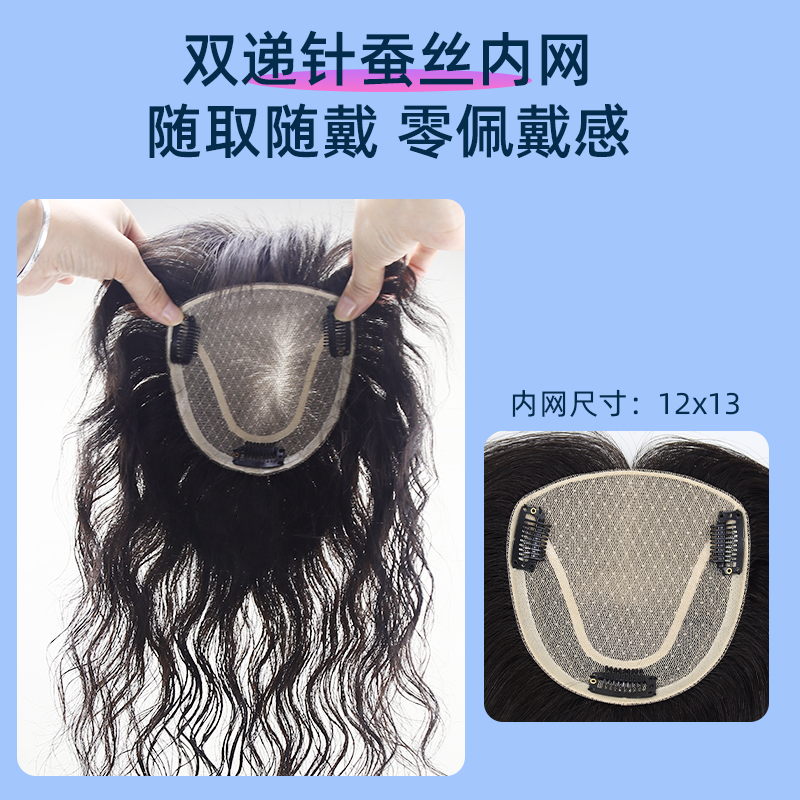 Wig female curl hair Liu sea covers the top white hair replenishment of fluffy natural hand weaving needle real hair