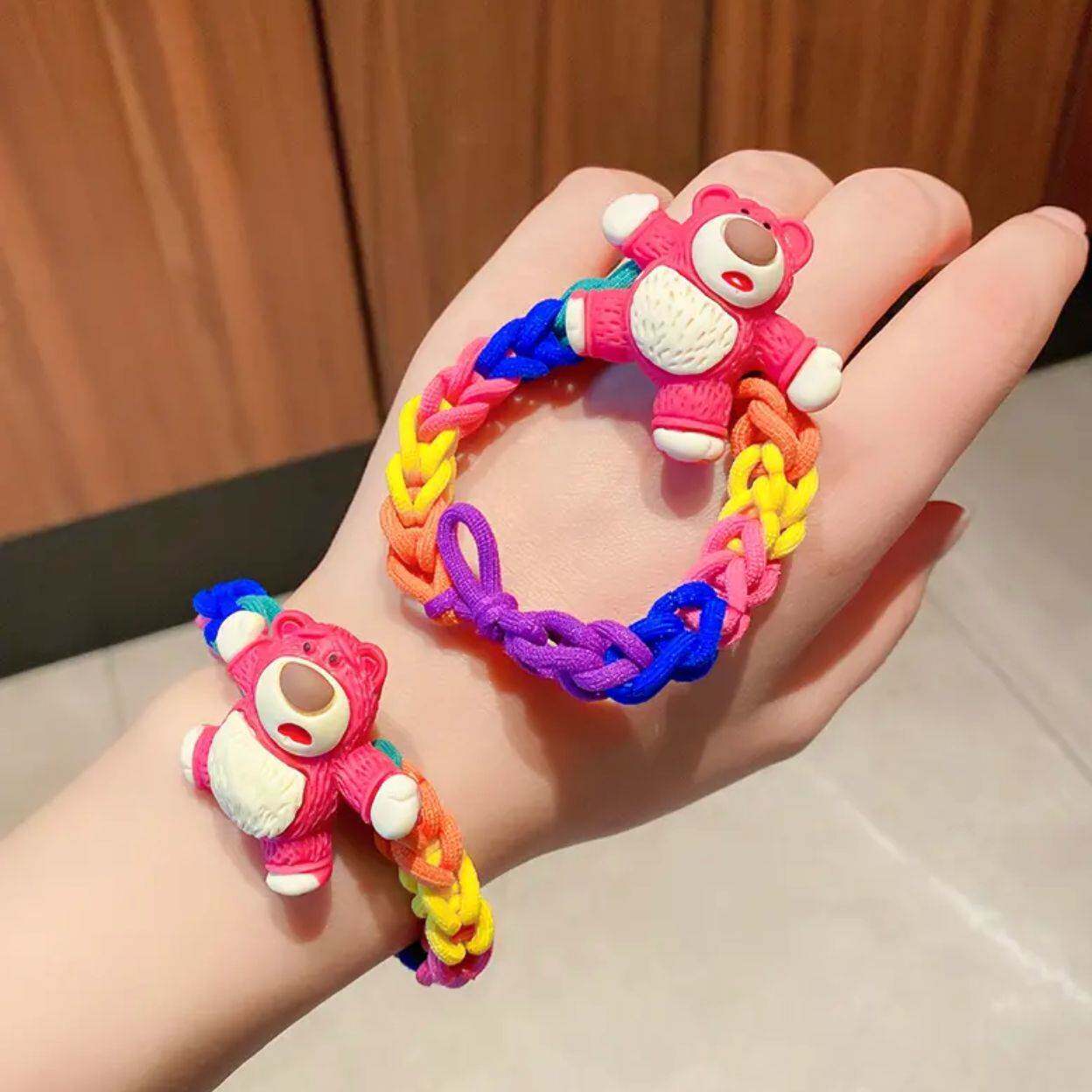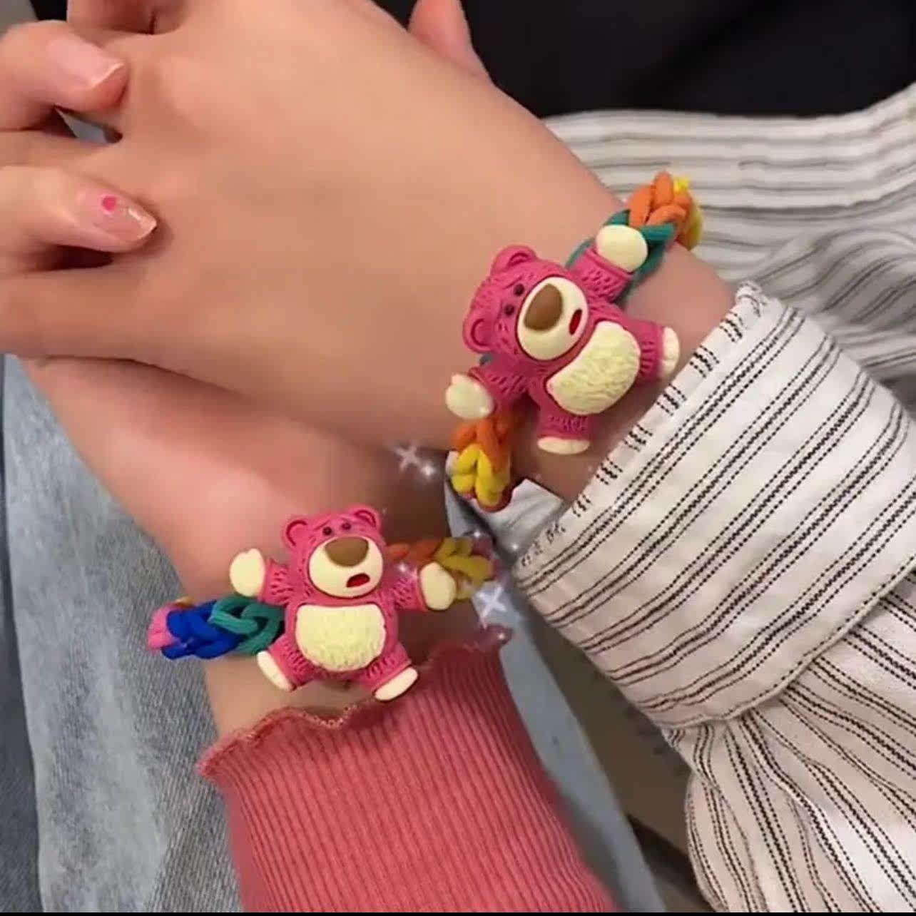Strawberry Bear Hand Rope Finished DIY Bracelet Hair Ring Finished Material Package Handwoven Cute Student Head Rope Couple