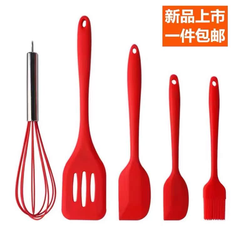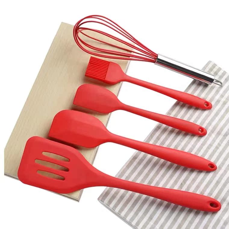 Silicone kitchen utensil set scraper 5-piece set baking tool silicone shovel food clip oil brush egg beater cooking spoon shovel