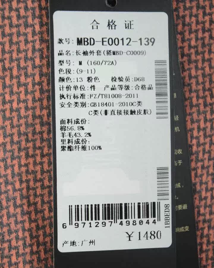 Taiwan counter autumn and winter new women's clothing MBD-E0012 casual all-match long-sleeved jacket 1480