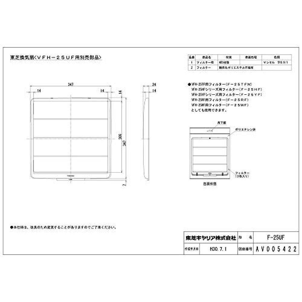 (Japan Direct Mail) Toshiba Toshiba Lighting Ventilator Filter Mat F-25UF-Taobao