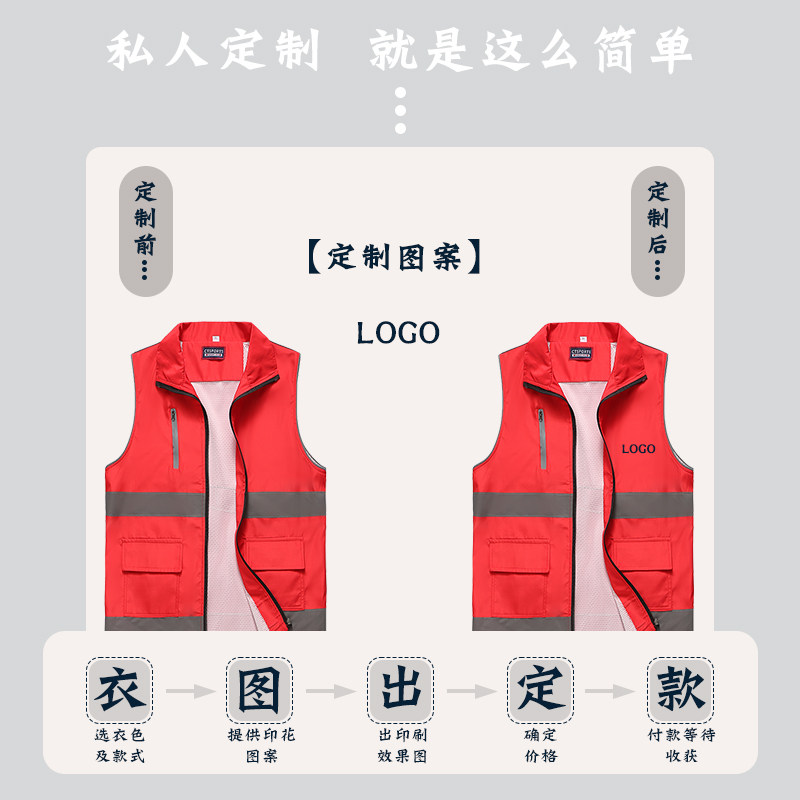 Volunteer vest custom high-end reflective vest public welfare activities advertising group work clothes printing LOGO