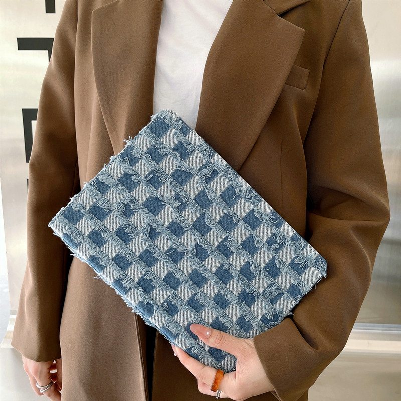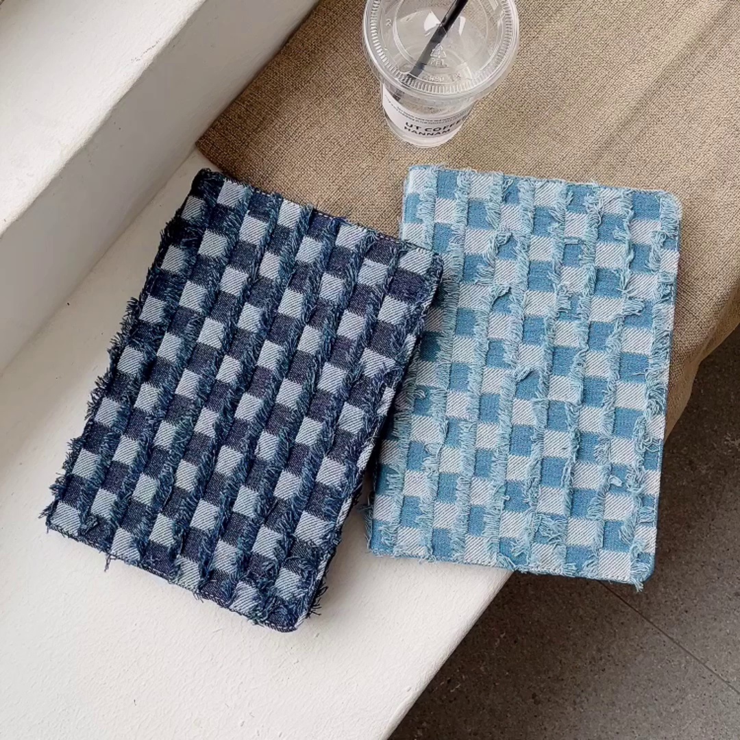 Denim plaid is suitable for 2021iPad protective cover pro retro art mini6 apple air5 niche anti-fall shell