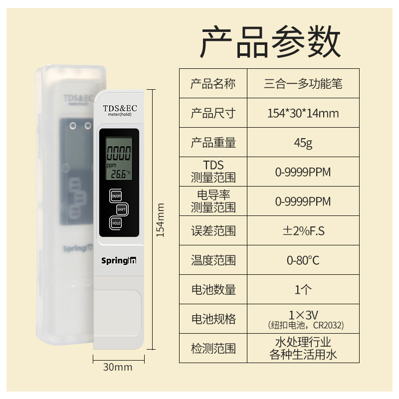 TDS water quality detection pen drinking water high-precision household water purifier pure tap water multi-function temperature test