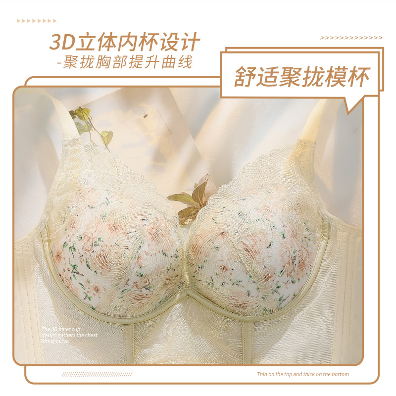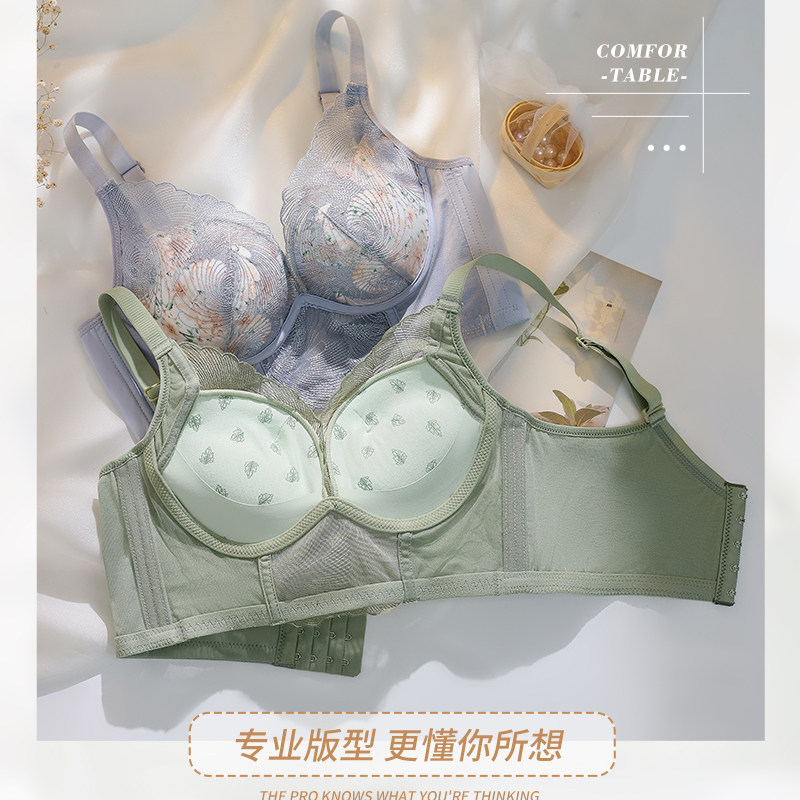 The new wormwood function-adjustable underwear sexy lace small chest big gathered no steel ring side closed bra