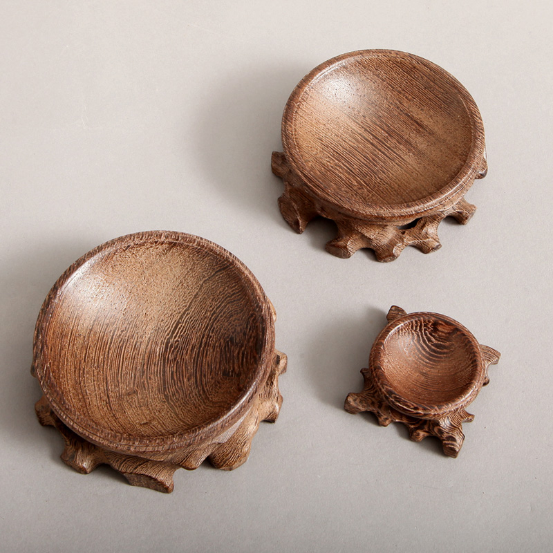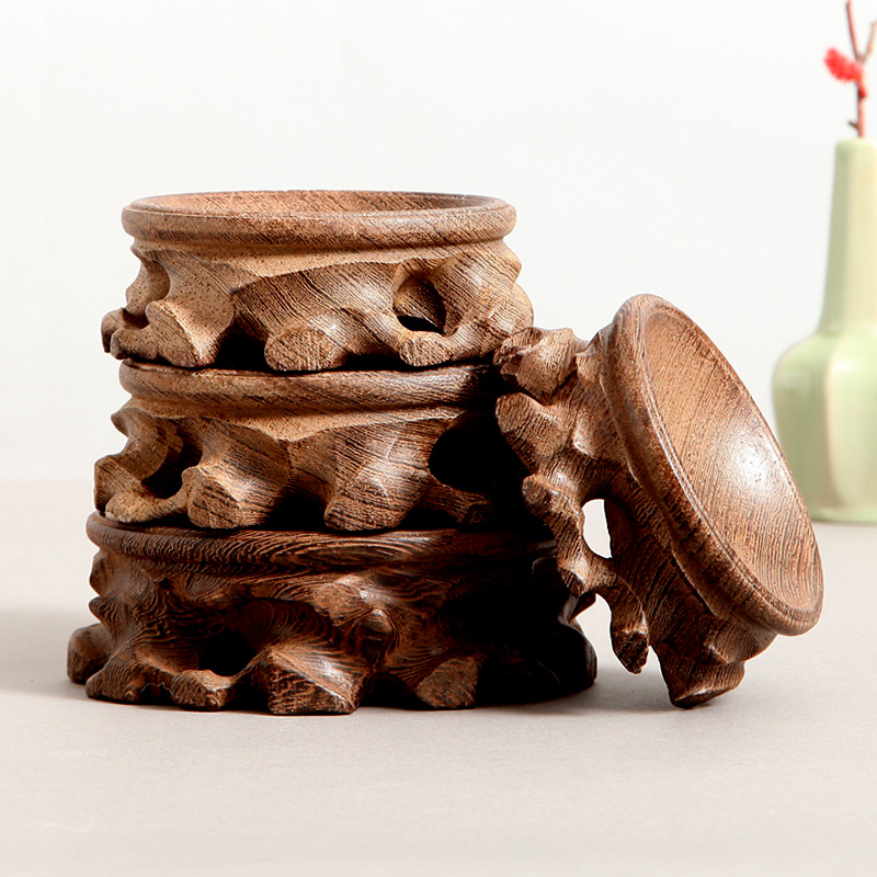 Chicken wing wood round root carving base Wenwan walnut support base crystal ball mahogany spherical ornament gourd base bracket