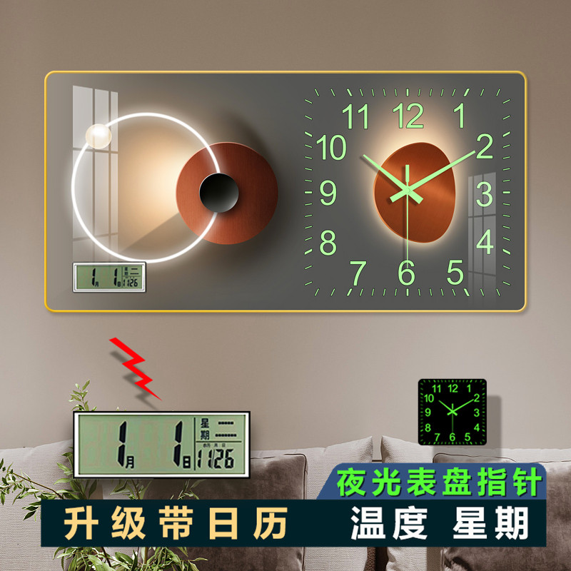 Clock Night Light Table Minimalist Modern Living Room Clock Hanging Clock New Night Light Home Fashion Decoration Free of perforated wall-mounted wall-mounted wall-Taobao
