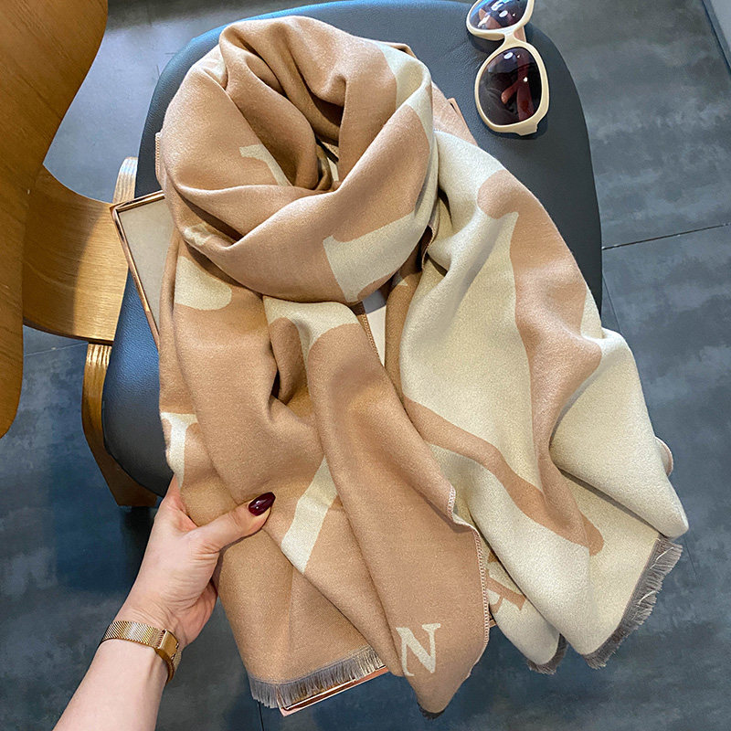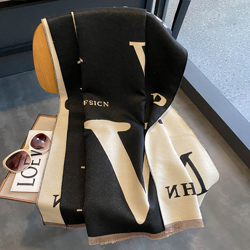 Hong Kong BNG Cashmere Scarves Women Winter Advanced Sensation Fashion Letters Double-sided Thickening Cape outside Warm Surrounding Neck-Taobao