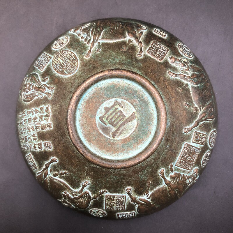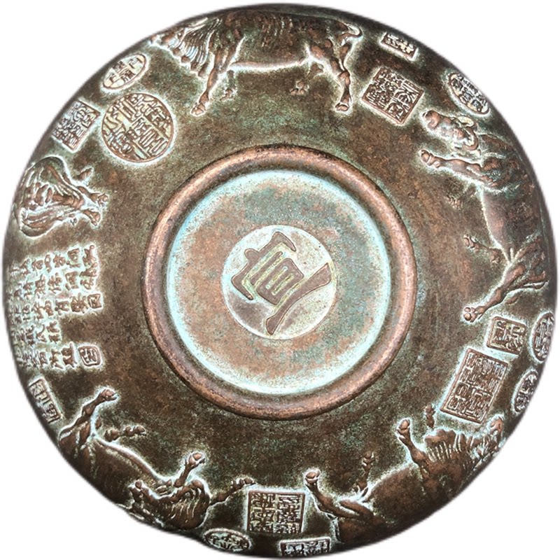 Antique copper retro copper green rust solid pentabull bowl small bowl of packaging old way collector furniture parts