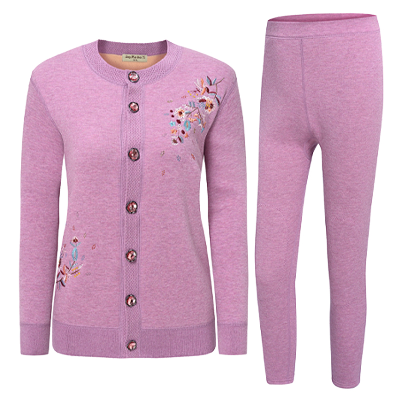 Mother Warm Clothes Woman Plus Suede Thickened Cardiovert Blouse Grandma Mid-Aged Cardiovert Warm Underwear Suit Winter-Taobao