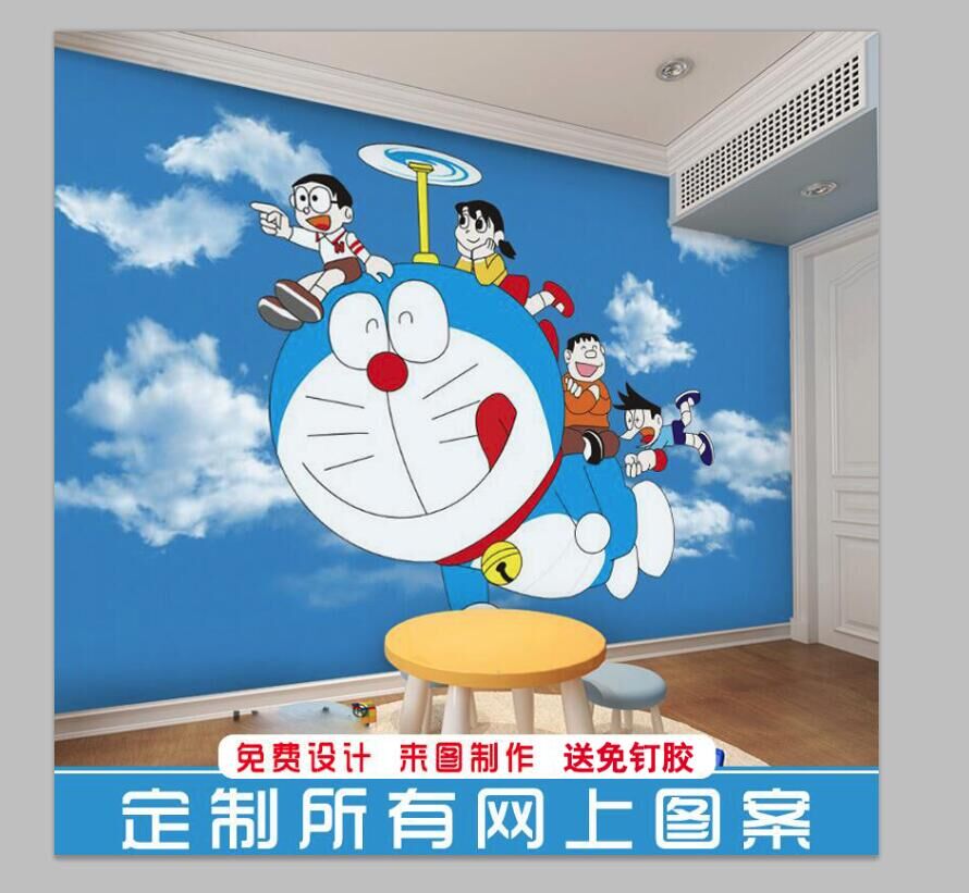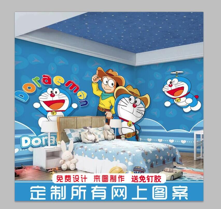 Doraemon themed children's room wall cartoon clinks cat boy bedroom bedhead bamboo fiber integration wall