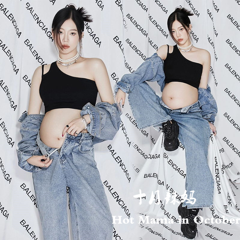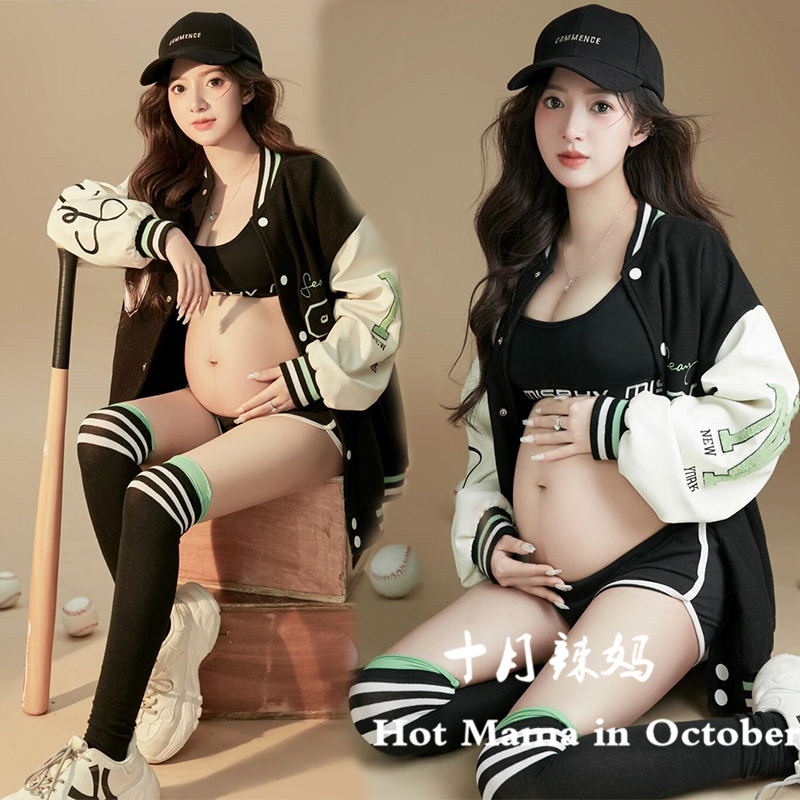Pregnant Woman Photogrammetry Photography of Authentic Clothing Shadow Building New Cute Little Fresh Sports Wind Baseball Clothes Pregnant Woman Photos-Taobao