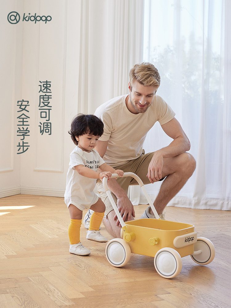 kidpop children small stroller baby learn step car solid wood 6 months folding baby's birthday hand push toy-Taobao
