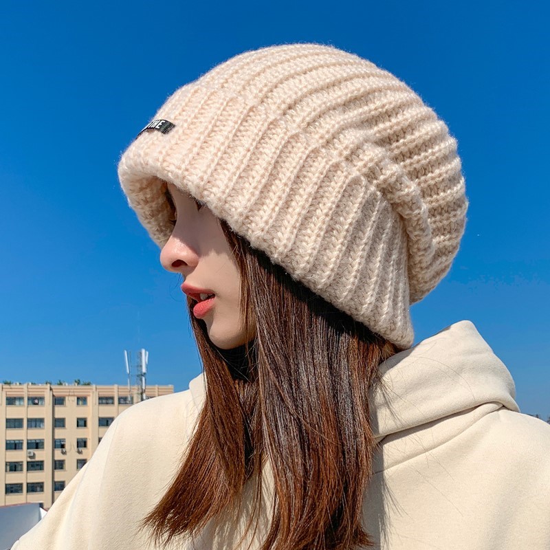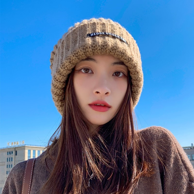 Theory among loose head circumference knit cap woman 100 hitch wire hat winter explicit face small pile cap tide-Taobao