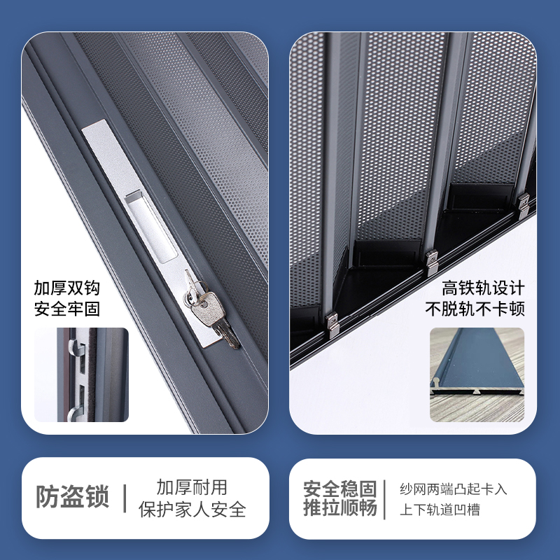 King Kong mesh folding screen door anti-cat, dog and mouse with lock anti-theft aluminum alloy invisible push-pull telescopic anti-mosquito steel sand window