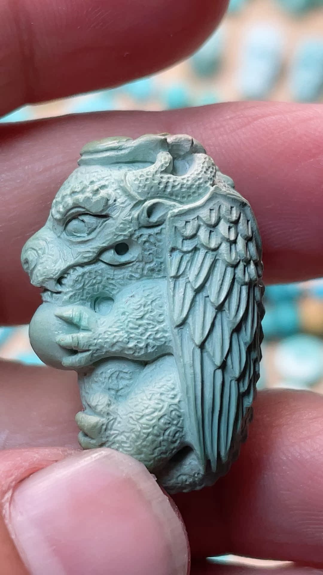 Turquoise High Porcelain Green Carving Small Flying Dragon Go Emerald Green Later