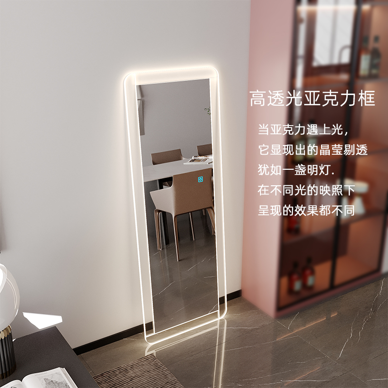 An hour-and-a-half mirror decorated with light acrylic belt light full-body mirror wearing mirror home retro against the wall floor Nordic fitting mirror