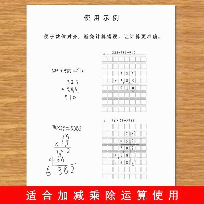 Vertical calculation draft practice paper first and second grade digital alignment operation paper elementary school students mathematical addition and subtraction