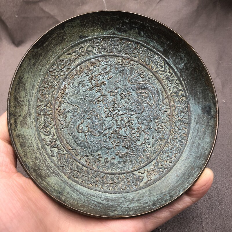 Antique - playful miscellaneous copper bowl copper dish 100 - thousand sun bowl Longfeng plate home furnishings do not use